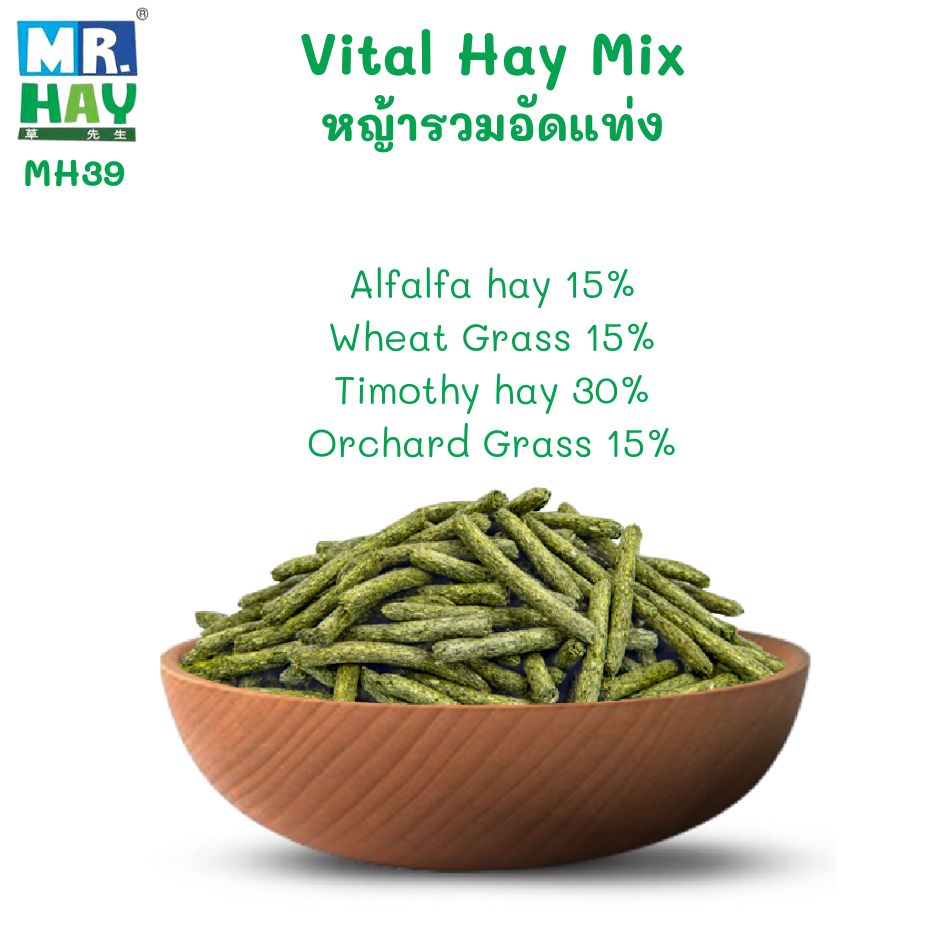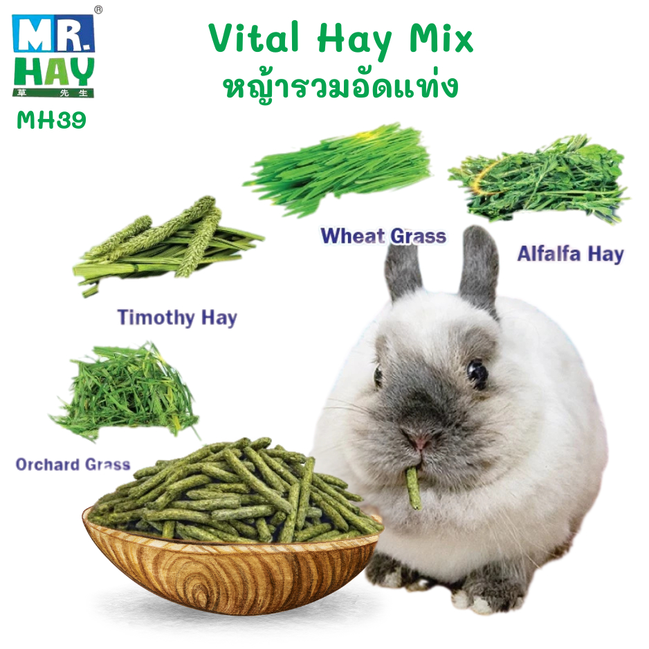 Mr.hay MH39 Vital Hay Mix หญ้าผสมอัดเม็ด (ทิโมธี+วีทกลาส+อัลฟ่าฟา+ออชาร์ด) กระต่าย แกสบี้ ชินชิล่า 800 g / 100 g