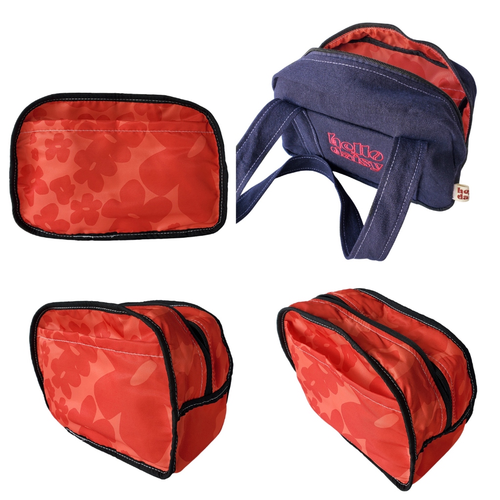 Hello Daisy กระเป๋ายีนส์สีมาใหม่ ยีนส์ Navy เข้ม ปักโลโก้แดง ซิปแดง
