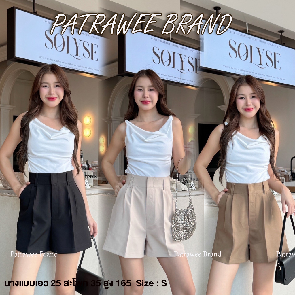 P44 กางเกงขาสั้นเอวสูง แต่งหูเข็มขัด ซิปหน้า ตะข้อ S-XL ใส่สวยเก็บพุง พลางหุ่น กางเกงขาสั้น