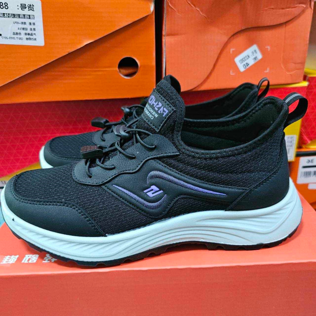 รองเท้าผ้าใบ ใส่ออกกำลังกายหรือทำกิจกรรมต่างๆ สีดำ-ขาว น้ำหนักเบา ความสูง 5 ซม. ไซส์ 36-42