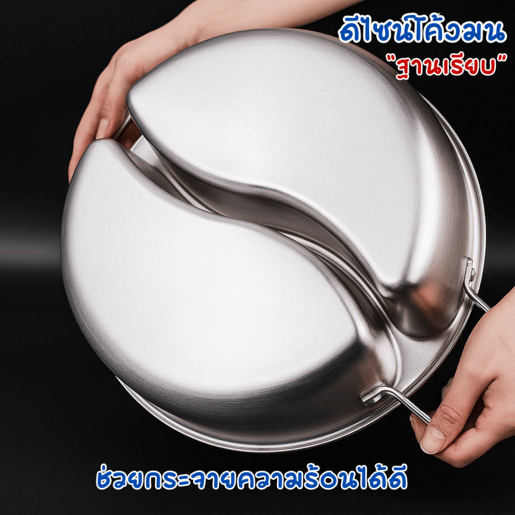 หม้อชาบู2 ช่อง สแตนเลสแบบหนา (ไร้รอยเชื่อม) พร้อมฝาแก้ว ขนาด 32/34 ซม. ใช้ได้ทุกเตา สำหรับเมนู ชาบู สุกี้ พร้อมส่งTH