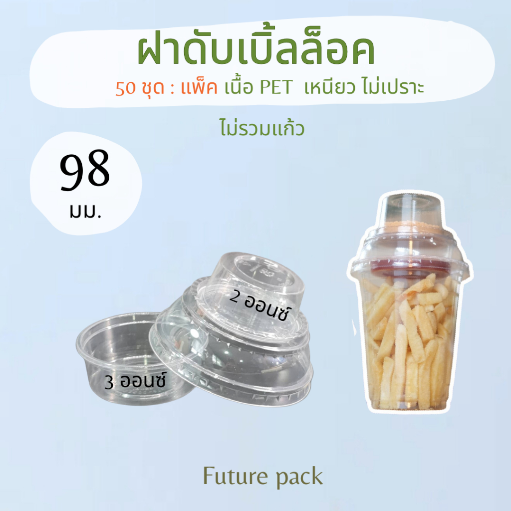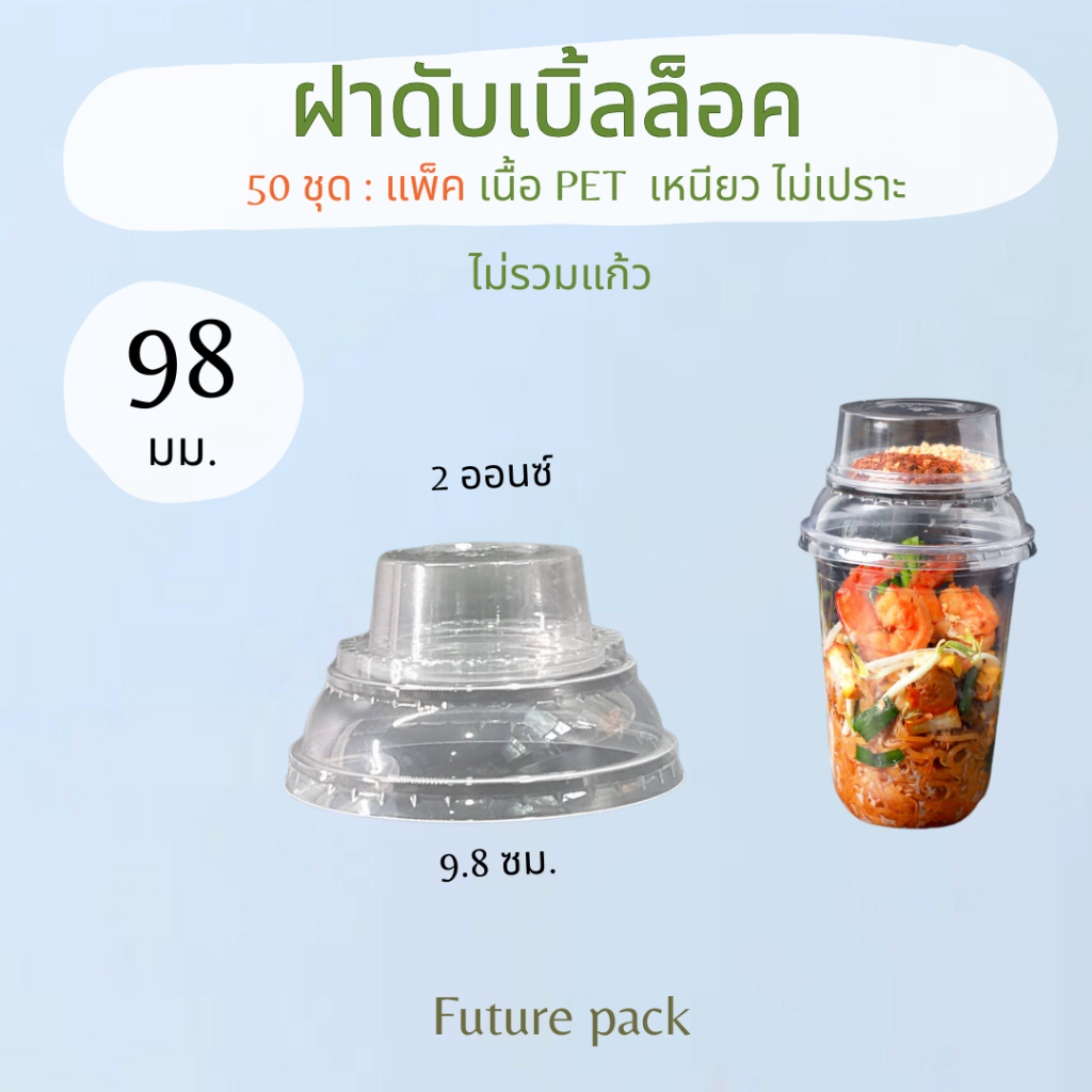 แก้วพลาสติกเพ็ต, ฝา 98 มม.เนื้อ ใสวิ้ง แพค 50 ชิ้น