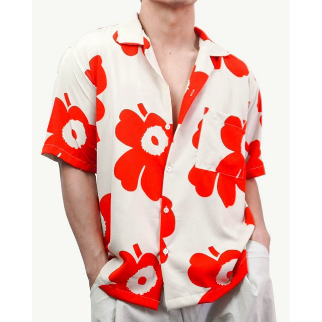HIM.GUY เสื้อฮาวาย Oversize ลายกราฟิก สไตล์เกาหลี ผ้าไหมอิตาลี | Hawaiian Shirt