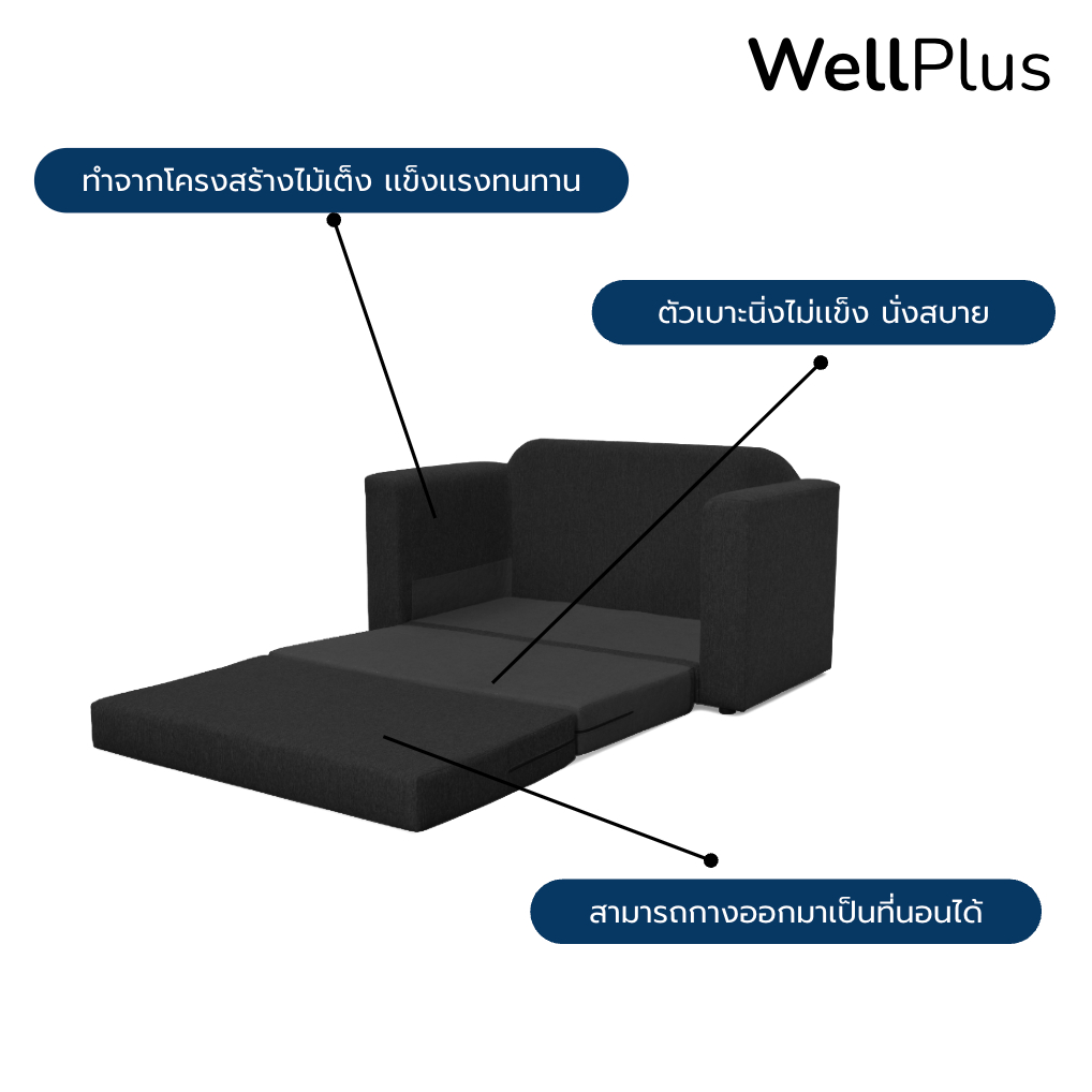 WellPlus โซฟาปรับนอน ดึงนอน 2 ที่นั่ง (ดึงนอนแล้วยาว200 ซม.) มีให้เลือกทั้งหมด 4 สี แถมหมอน 2 ใบ