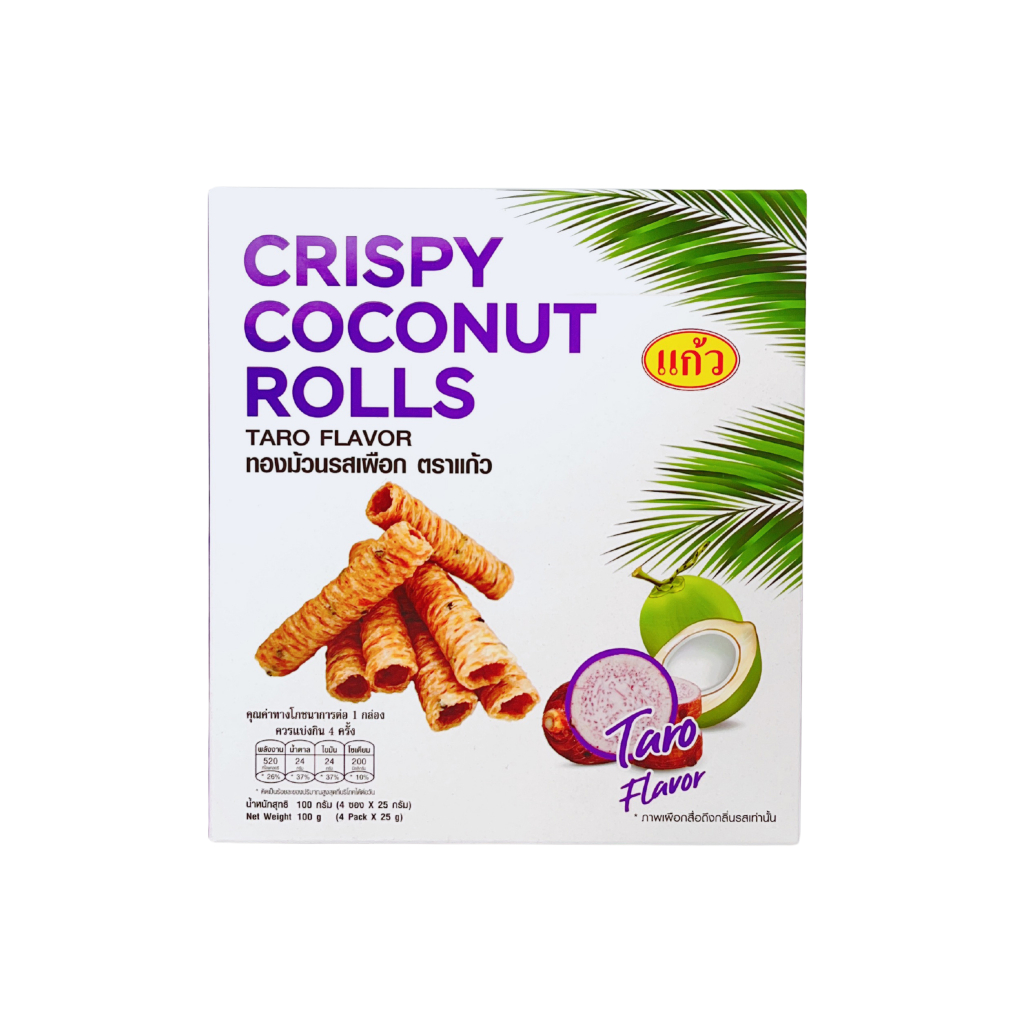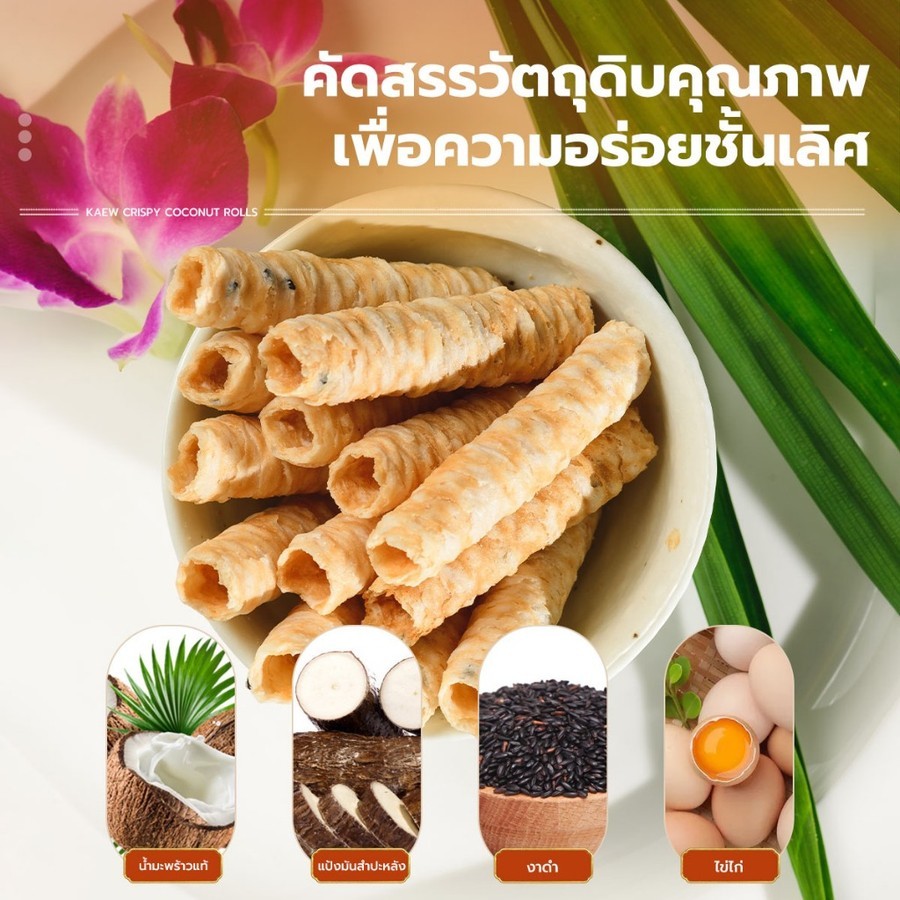 แก้ว ทองม้วนกะทิแท้ รสเผือก ขนาด 100 กรัม ( ของฝาก กาญจนบุรี ขนมไทย ขนมกรุบกรอบ ขนมกินเล่น )