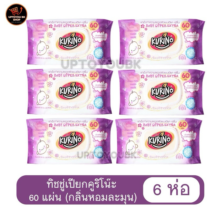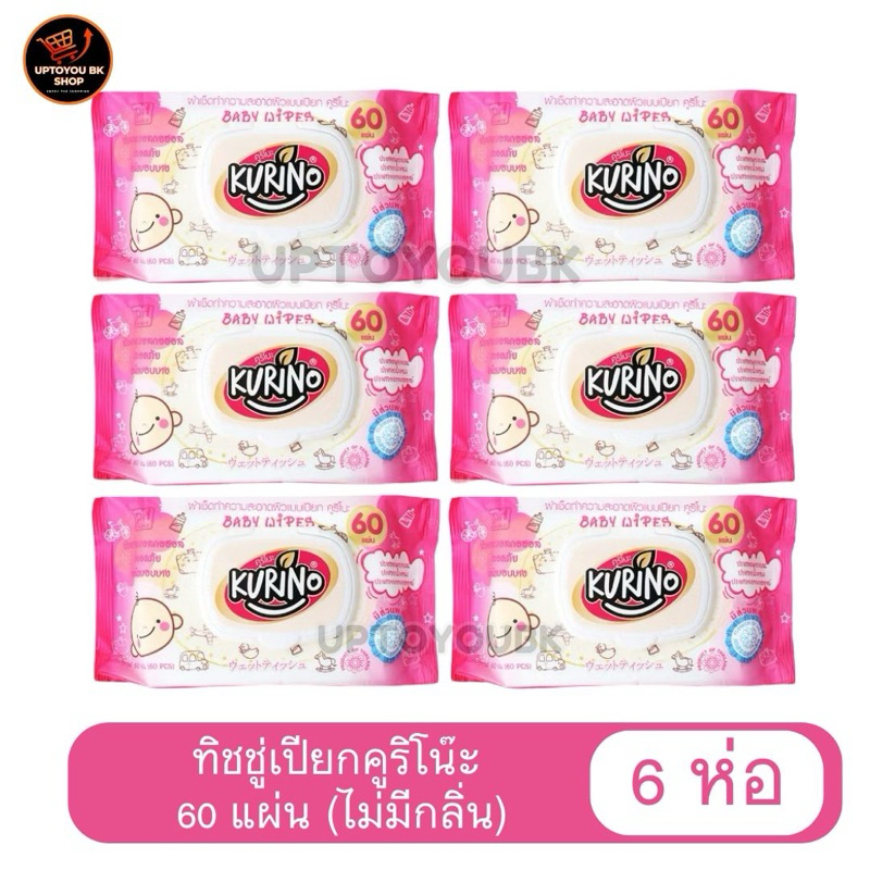 (คูริโนะ ชุด 6 ห่อ) Kurino BABY WIPE ทิชชู่เปียก ผ้าเช็ดทำความสะอาดผิวแบบเปียก 1 ห่อ 60 แผ่น คูริโน๊ะ 2สูตร ม่วง/ชมพู