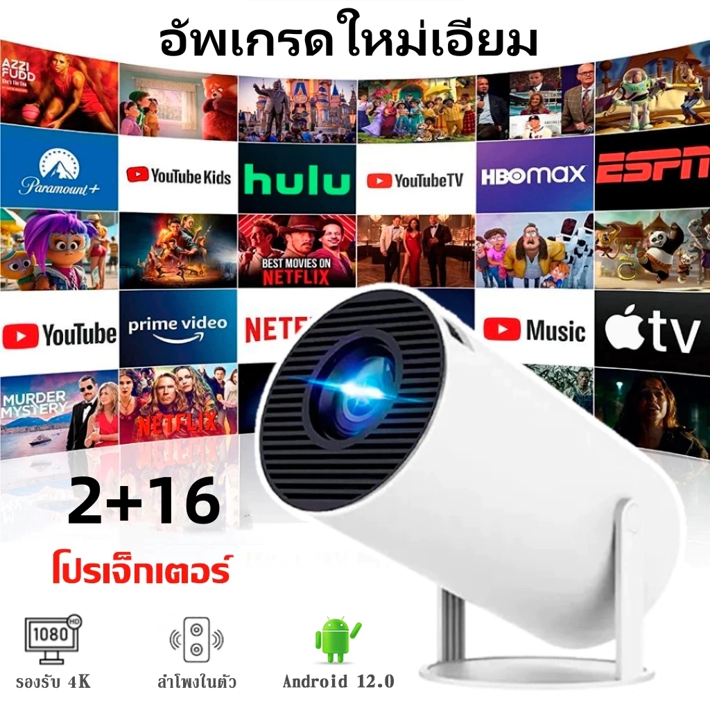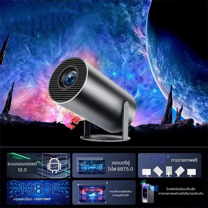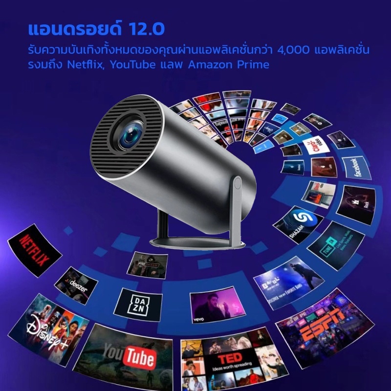 โปรเจคเตอร์มินิ HY300 PRO โปรเจคเตอร์ 4K Android 12.0 1080P Ultra HD WIFIบลูทูธโฮมเธียเตอร์โปรเจคเตอร์ 4K Wifi Projector