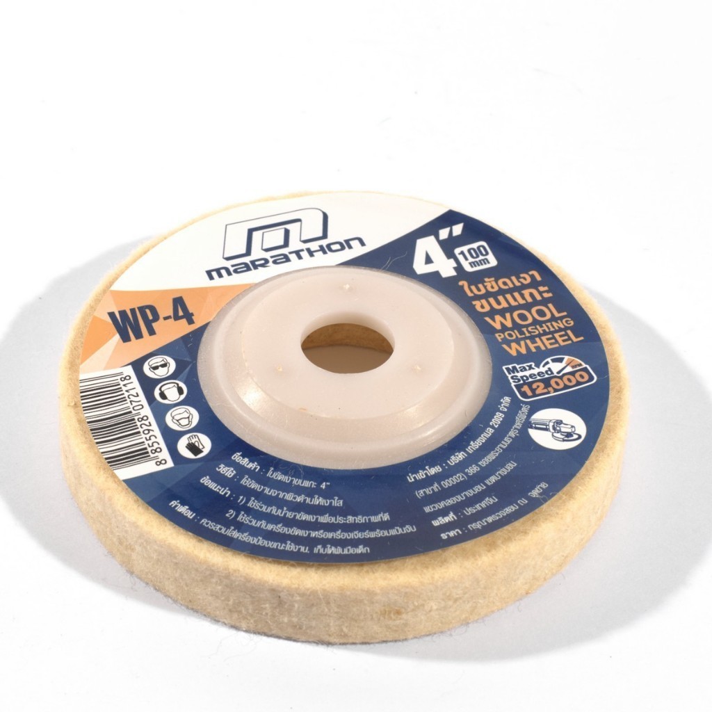 ใบขัดเงาขนแกะ MARATHON ขนาด 4 นิ้ว (100 มม.) รุ่น WP-4 ใช้คู่กับน้ำยาขัดเงา ใช้ขัดเงาชิ้นงานกระจก พลาสติก สแตนเลส bonus