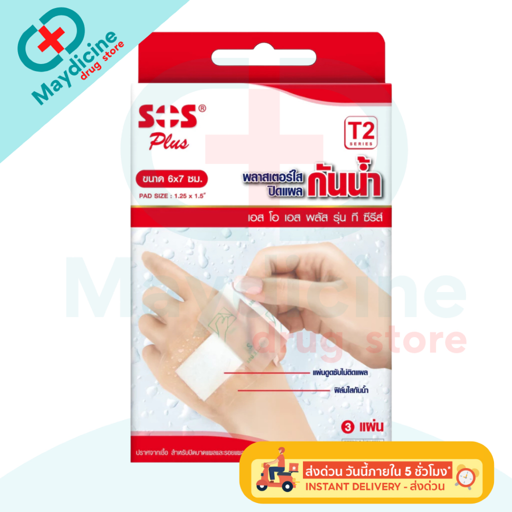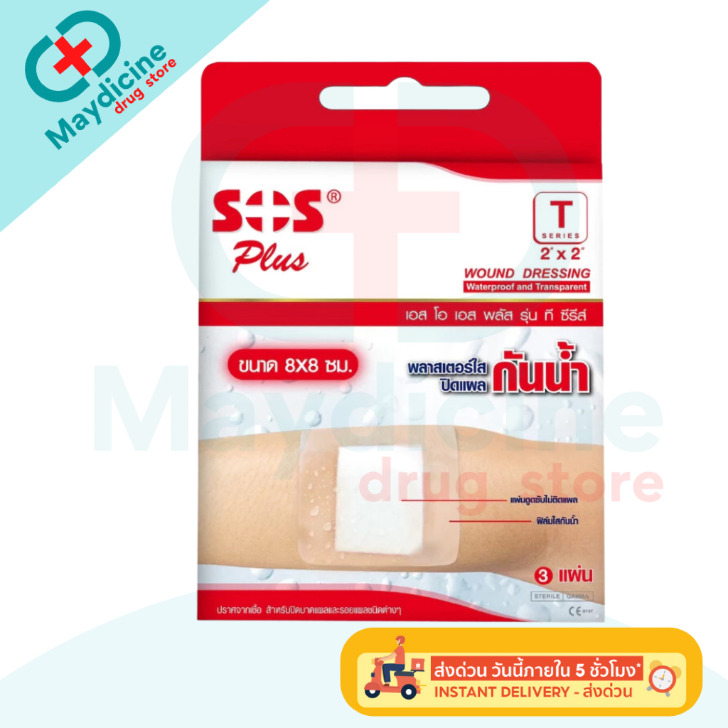 พลาสเตอร์ใสกันน้ำ SOS Plus T1 T2 T3 T4 2X2 2X4 3X3 S มินิ พลาสเตอร์กันน้ำ ปิดแผล