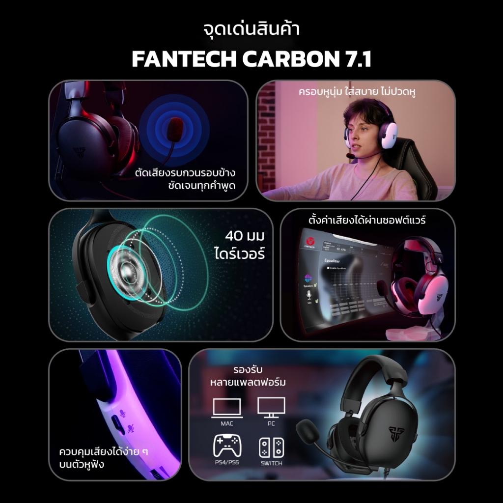 FANTECH หูฟังเกมมิ่ง ระบบ 7.1 Gaming Headset มีไมโครโฟน ควบคุมระดับเสียงได้ง่าย เชื่อมต่อผ่าน USB รุ่น HG30