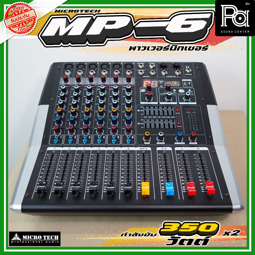 MICROTECH MP6 Power Mixer เพาเวอร์มิกเซอร์ 6 ช่องสัญญาณ Bluetooth USB เอฟเฟคแท้ MP 6 PA SOUND CENTER