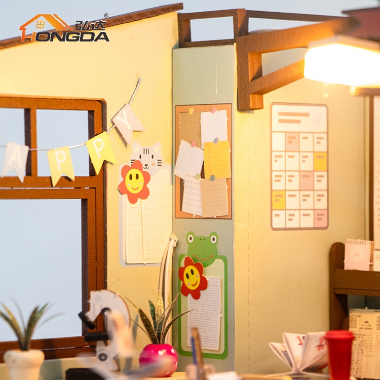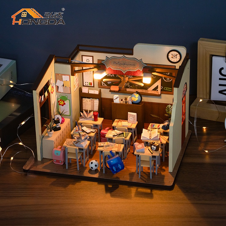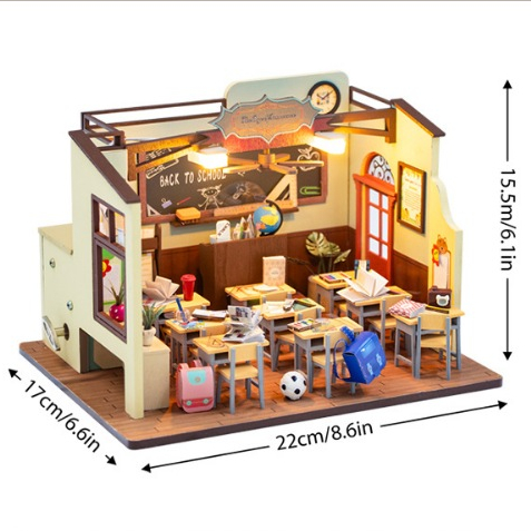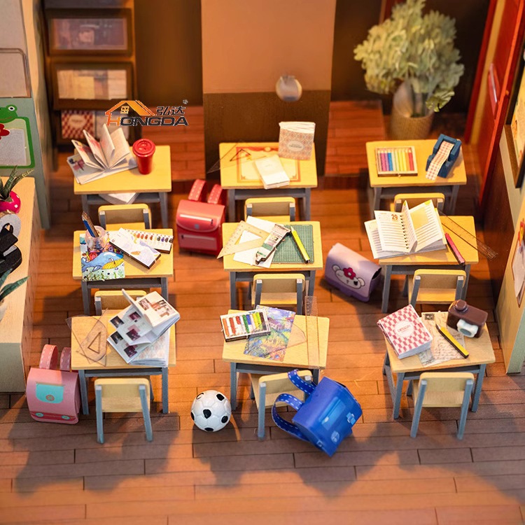 พร้อมส่ง 📚 ห้องเรียน บ้านตุ๊กตา DIY ประกอบเอง 1:24 ฉากถ่ายรูป แถมฝากันฝุ่น (Hongda - M2321)