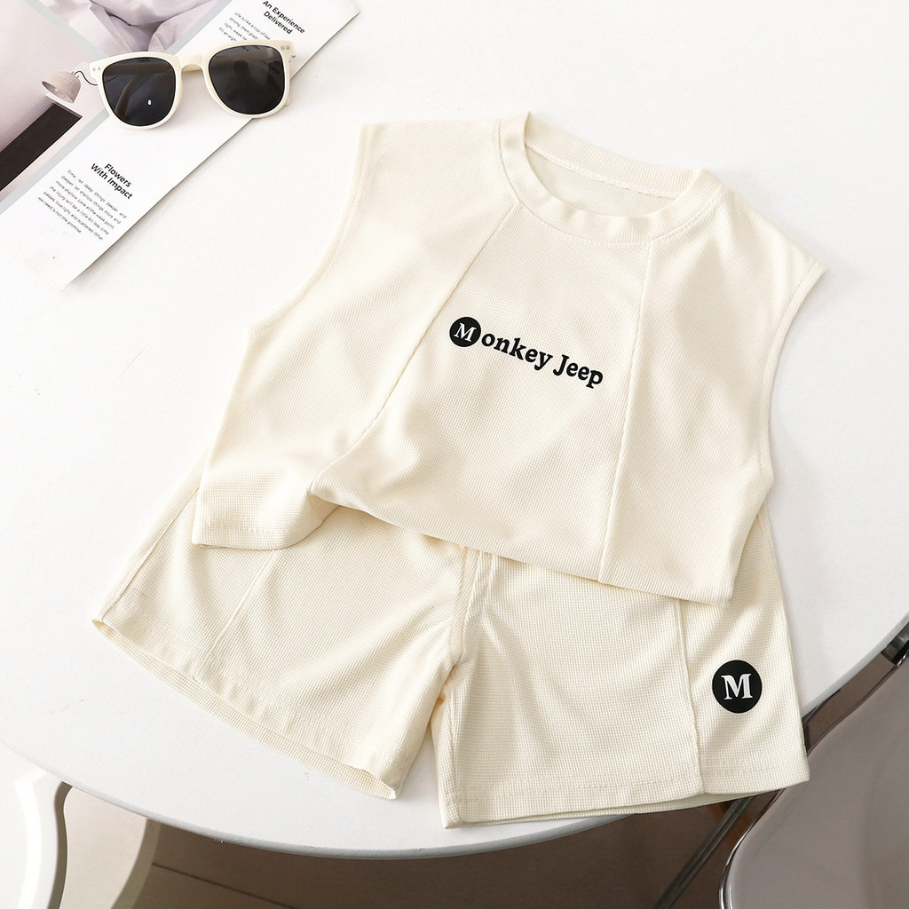 【YAOEENH】80-160ซม ฤดูร้อนชายหญิงบางกีฬาเสื้อกั๊กชุดขนาดกลางขนาดใหญ่เด็กกางเกงขาสั้นแขนกุดสบายๆชุดสองชิ้นพร้อมสต็อกจัดส่งที่รวดเร็ว
