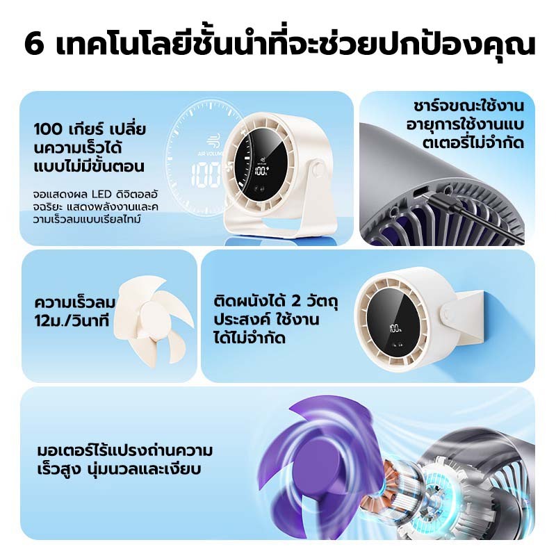 KENTO LITE พัดลมสำนักงาน 6 นิ้ว ความเร็วสูง ทํางานเงียบ ปรับความเร็วลมผ่านหน้าจอสัมผัสได้ 100 ระดับ ใช้ได้12ชม