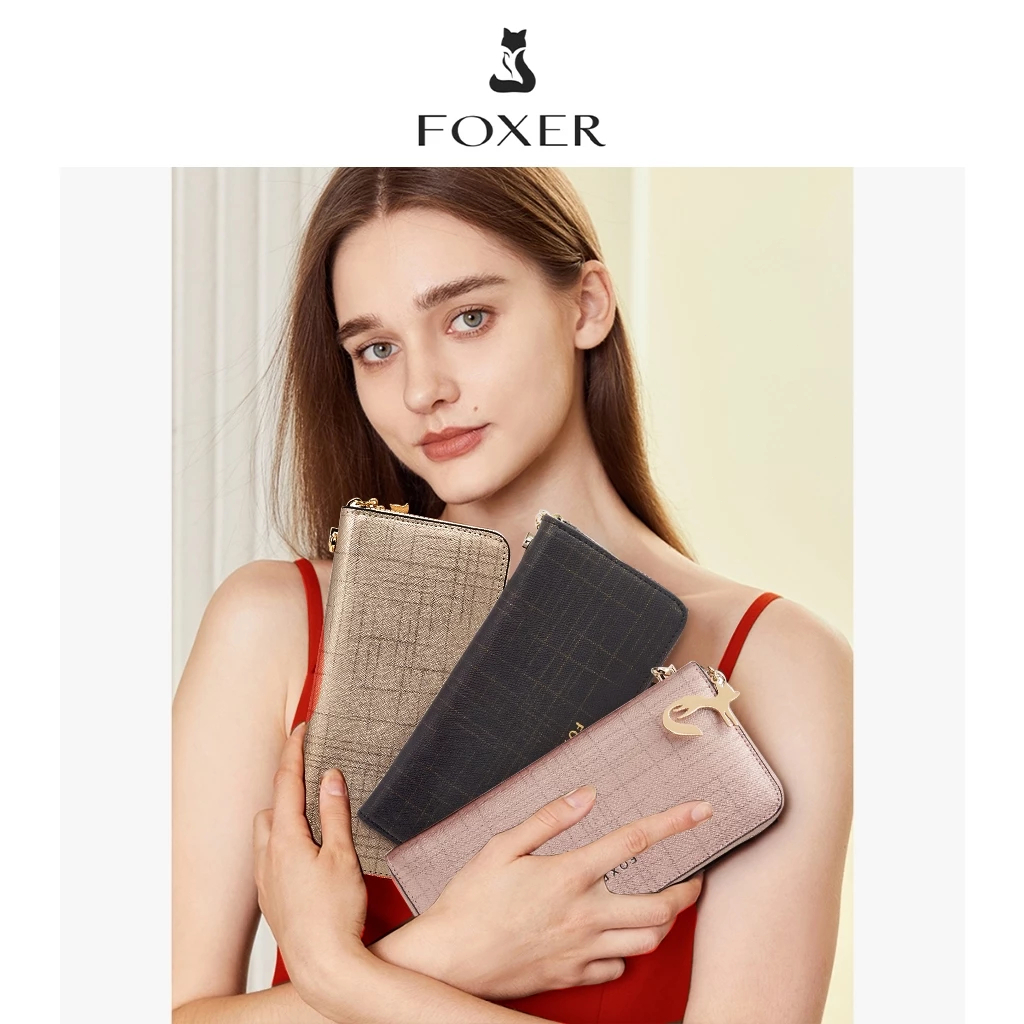FOXER กระเป๋าสตางค์หนังผู้หญิง กระเป๋าสตางค์แบบมีซิป เรียบง่ายและมีสไตล์ กระเป๋าสตางค์แบบยาว