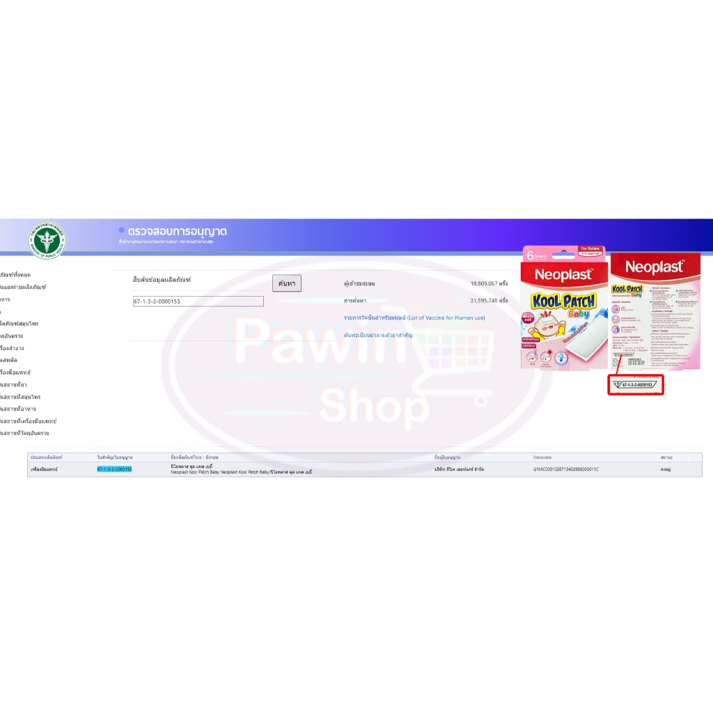 Neoplast Kool Patch Baby แผ่นเจลลดไข้ แผ่นเจลระบายความร้อน บรรจุ 2แผ่น[3ซอง/1กล่องสีชมพู]EE 1211 สำหรับเด็กแรกเกิด0-2ขวบ
