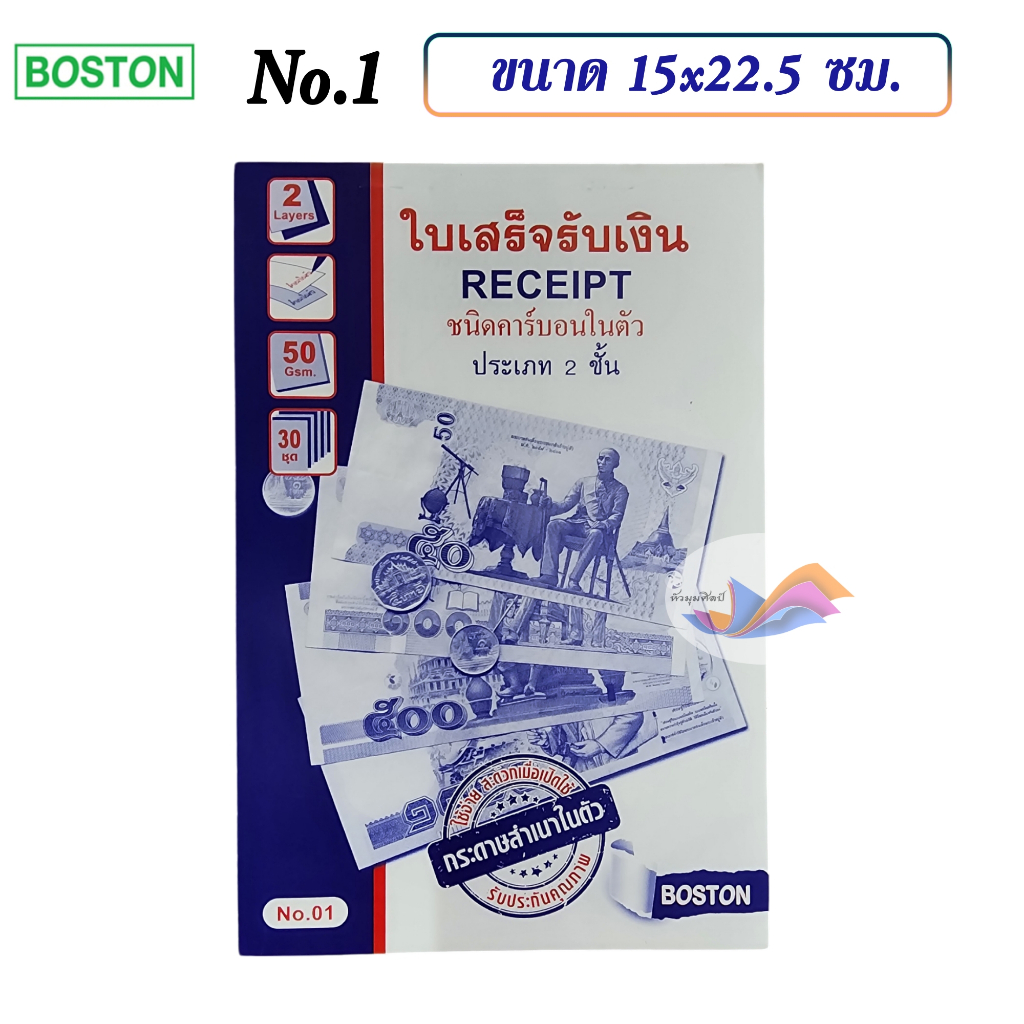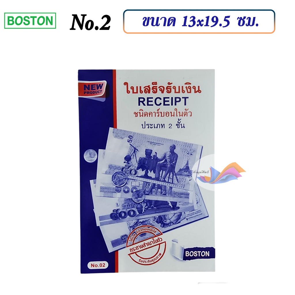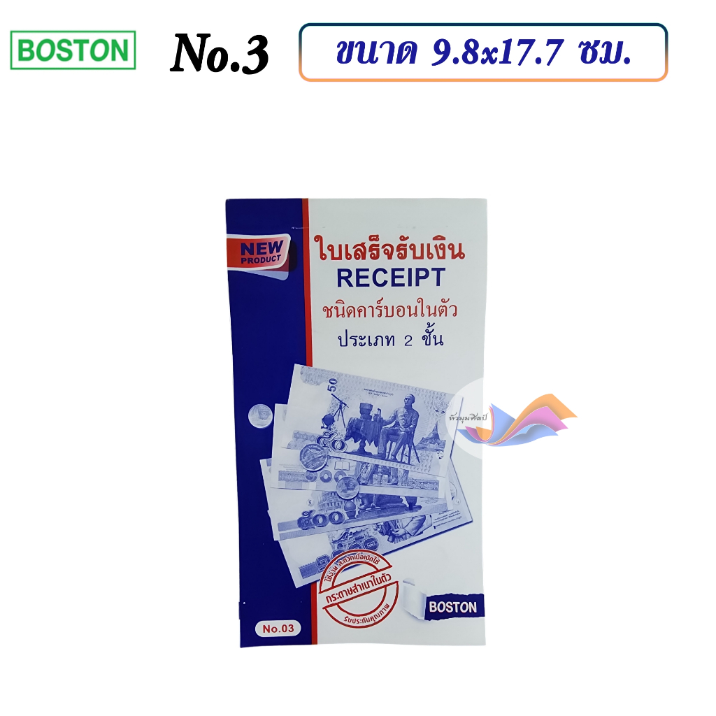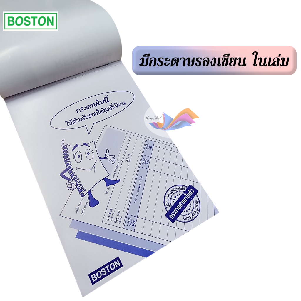 ใบเสร็จรับเงิน สมุดบิลใบเสร็จรับเงิน ใบเสร็จ BOSTON ชนิดมีคาร์บอนในตัว 2 ชั้น เบอร์ 1/2/3