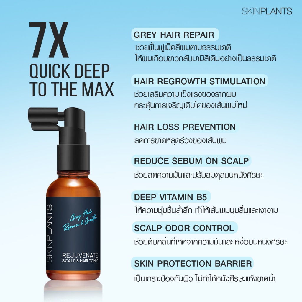 SKINPLANTS REJUVENATE SCALP & HAIR TONIC SERUM เซรั่มบำรุงหนังศีรษะ ลดผมร่วง ลดผมร่วง ลดผมหงอก 33ml.