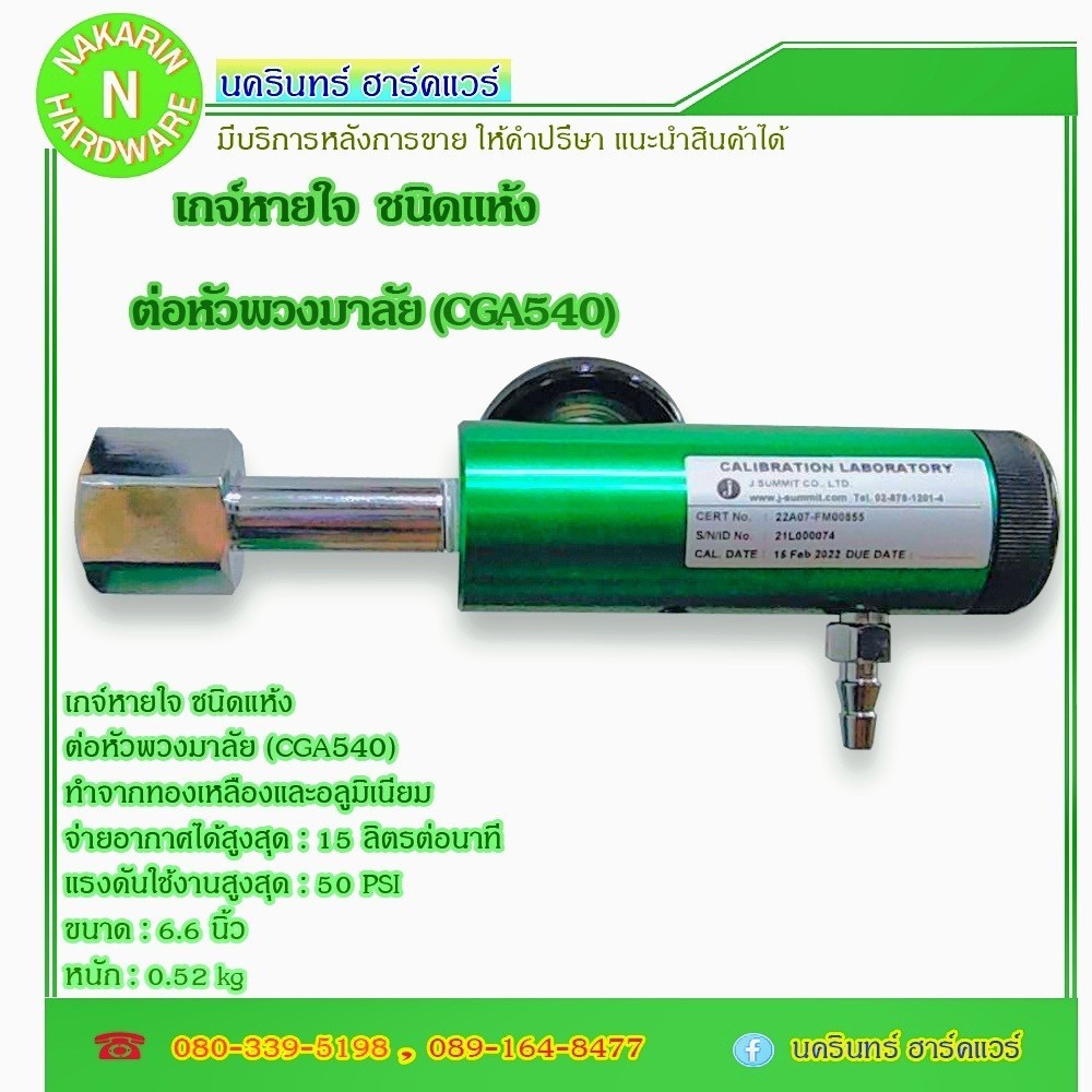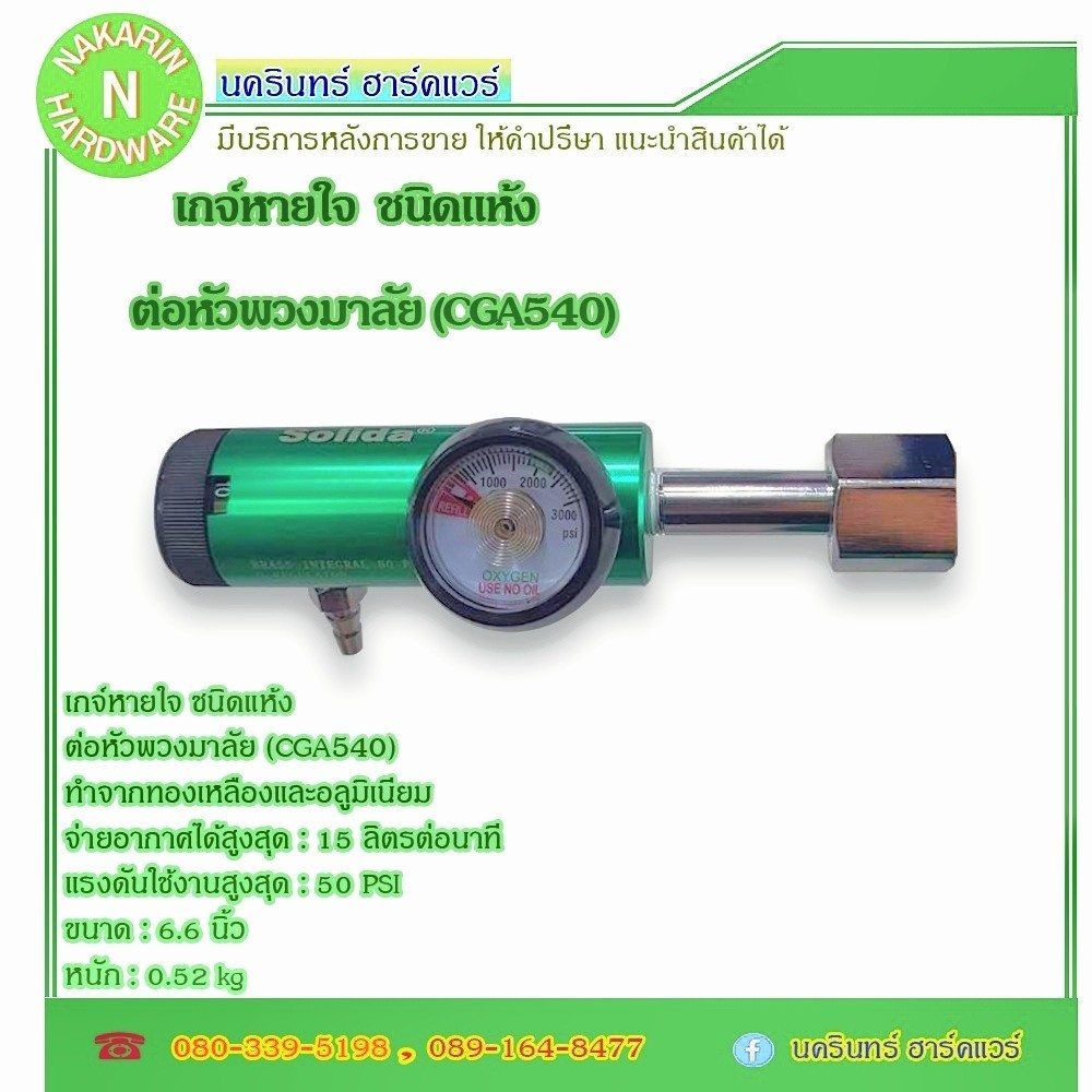 เกจ์หายใจ ชนิดแห้ง หัวพวงมาลัย (CGA540) ยี่ห้อ Solida สำหรับถังอลูมิเนียม