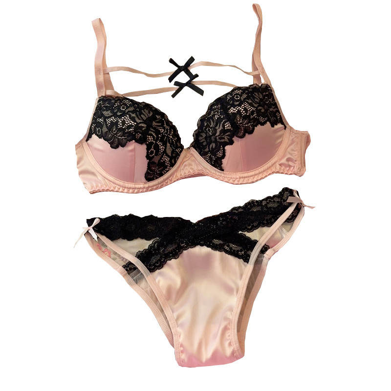 เซ็กซี่โบว์สายรัดลูกไม้สีชมพูชุดชั้นในสุภาพสตรีแหวนเหล็ก