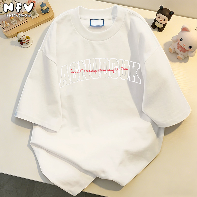 NFV เสื้อยืดแฟชั่น🎀ลายสกรีนตัวอักษร เรียบง่ายแมทช์ง่าย ขนาดใหญ่หลวม สาวอ้วน Cotton T-shirt YG3