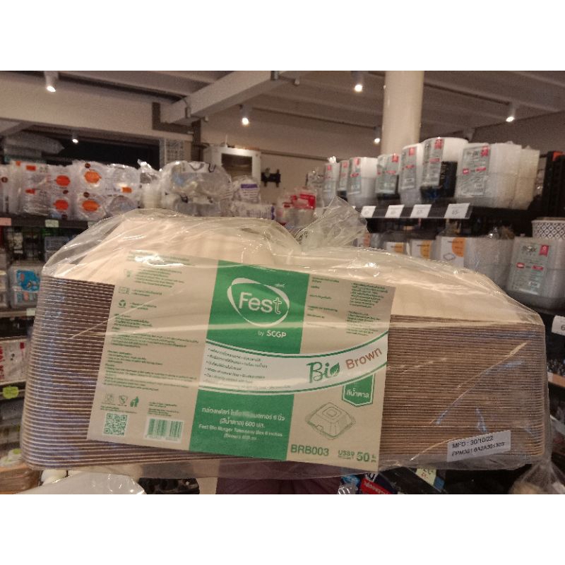 Fest bio กล่องอาหารไบโอน้ำตาลทรงเบอเกอร์6นิ้ว BRB003 จำนวน50ใบ (ทรงจตุรัส)