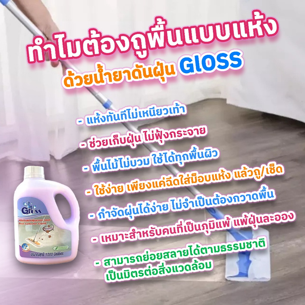 GLOSS น้ำยาดันฝุ่น เก็บฝุ่นละออง เคลือบเงาพื้น สูตรเข้มข้น ไม่ต้องผสมน้ำ แห้งไว ขนาด 1000ml.