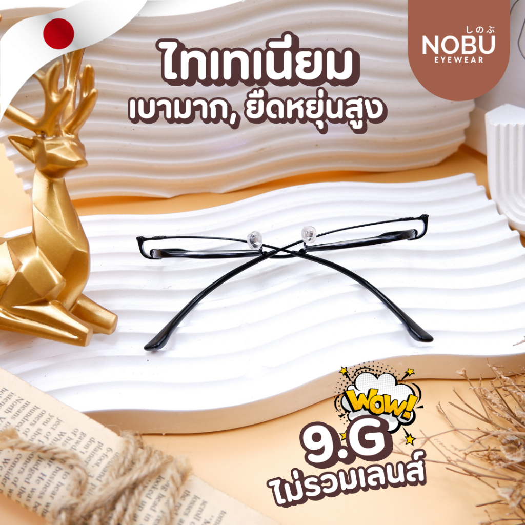 กรอบแว่นไทเทเนียม NOBU ของแท้ 100% Titanium IP ดัดงอได้,น้ำหนักเบา มีบริการตัดเลนส์สายตา 2399
