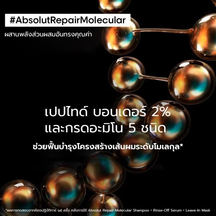 L'Oreal ABSOLUT REPAIR MOLECULAR แชมพู ทรีทเมนท์ เซรั่ม ฟื้นฟูผมเสียจากเคมีซ้ำซ้อน Loreal ลอรีอัล