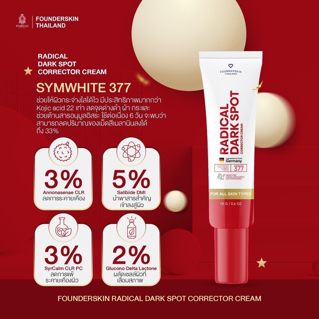 [ แพ็คเกจใหม่ได้ 1 หลอด 18 กรัม ] ครีมลดรอยฟาวเดอร์ สูตรSymwhite377 ครีมลดรอยสูตรเก่าฟาวเดอร์สกิน