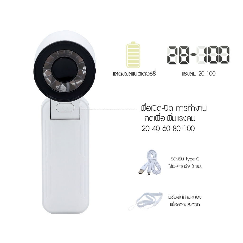 KASHIWA พัดลมพกพา รุ่น KW-3000 แรงลม 5 ระดับ พัดลมมือถือ ตั้งโต๊ะ และสายคล้องมือ