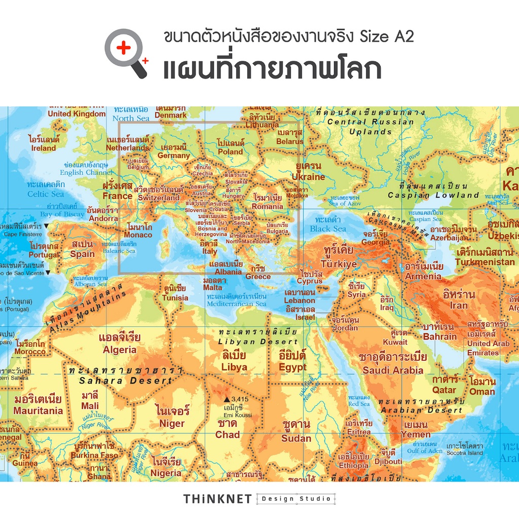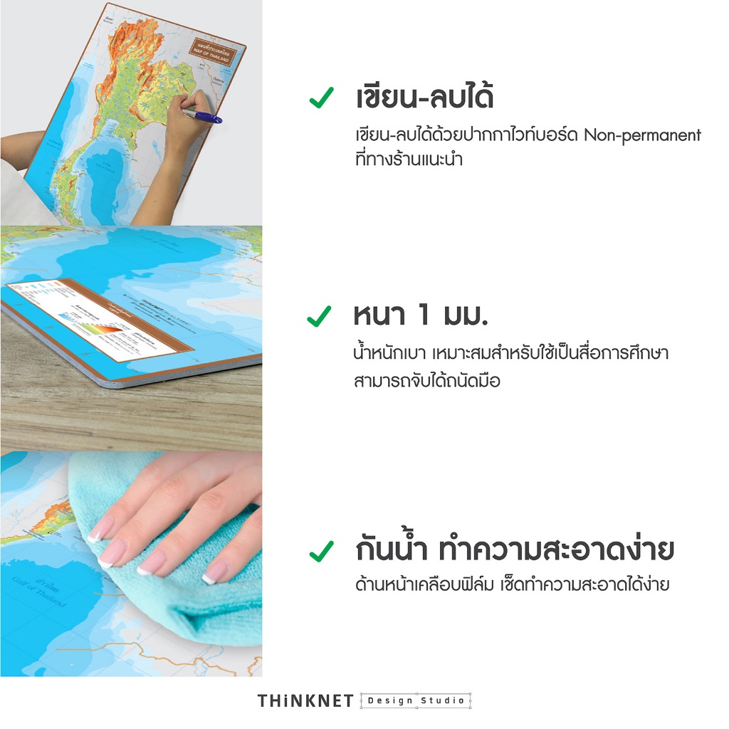 โปสเตอร์บอร์ดสื่อการสอนแผนที่ภูมิศาสตร์ กายภาพ โลก ทวีป ประเทศไทย เขียนลบได้ ติดผนังได้ ตอบโจทย์การศึกษา ขนาด 60x42 ซม.