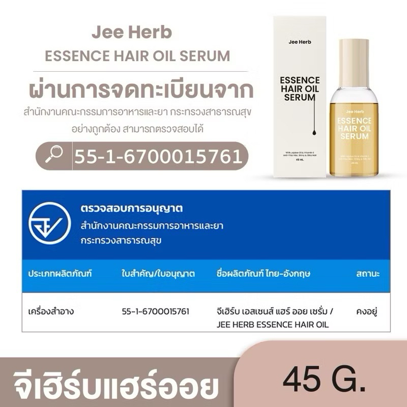 [ซื้อในไลฟ์ลด50%ของแท้] แฮร์ออยล์จีเฮิร์บ Jeeherb Hair Oil แฮร์ออยล์ บำรุงผมสวย ฟื้นฟูผมเสีย 45 ml.