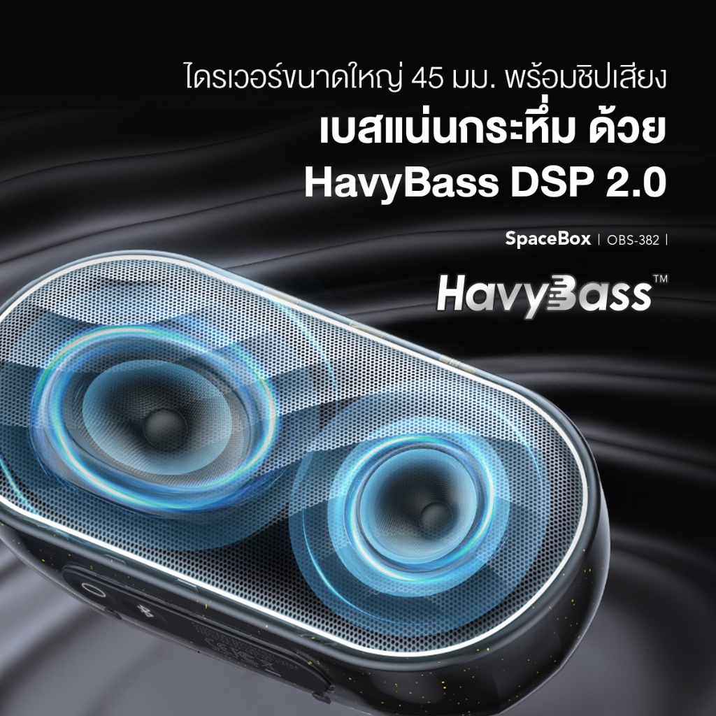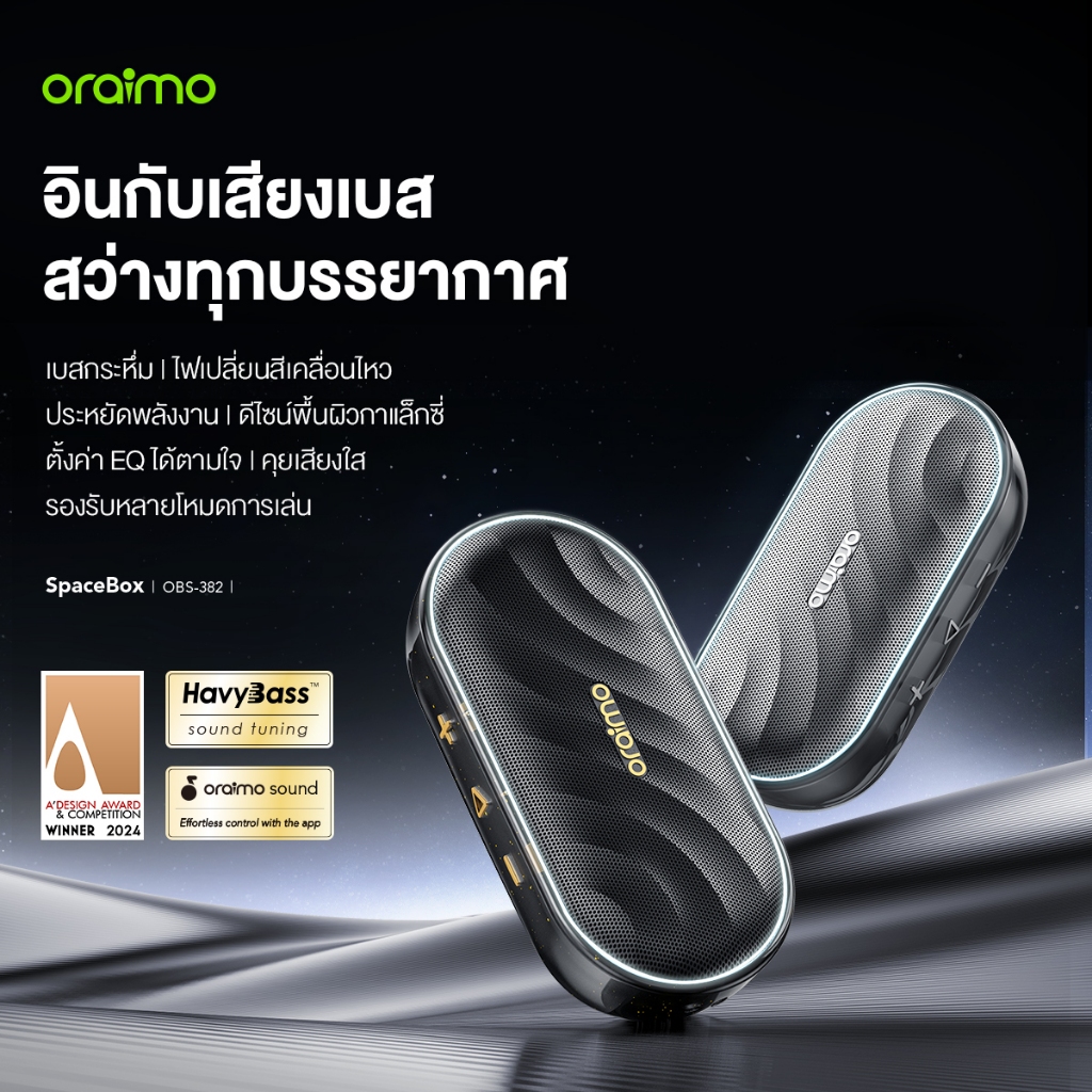 oraimo SpaceBox OBS-382 ลําโพงไร้สาย ฮาวี่เบส™ เบสล้ําลึก ไฟแบบกําหนดเองผ่านแอป เวลาเล่น 30 ชม. วิทยุ เอฟเอ็ม การ์ด TF EQ ปรับได้ รวมเชือกเส้นเล็ก
