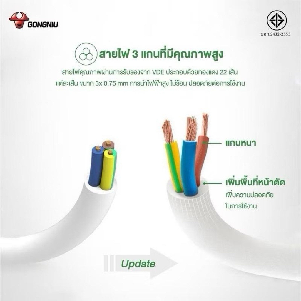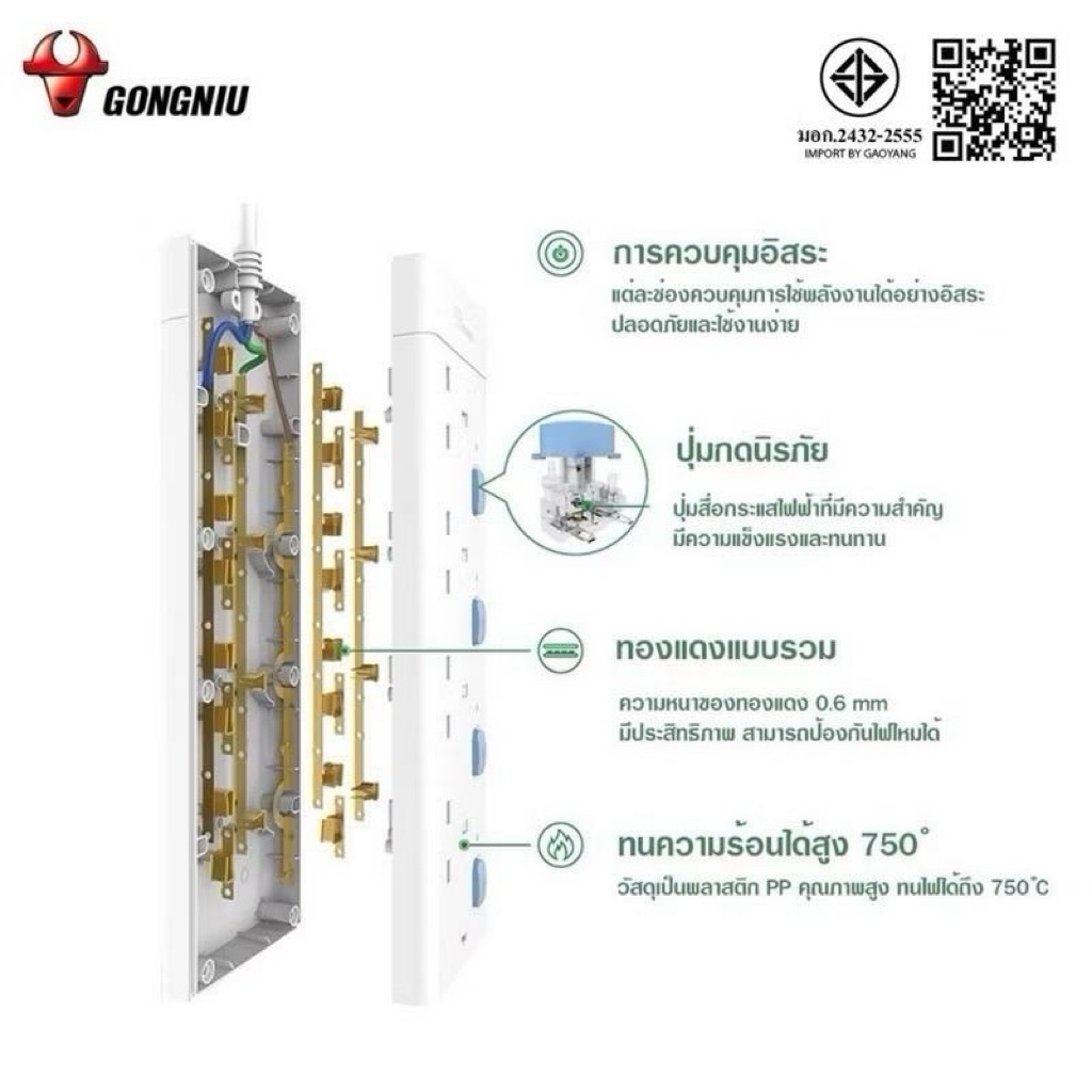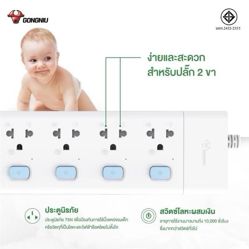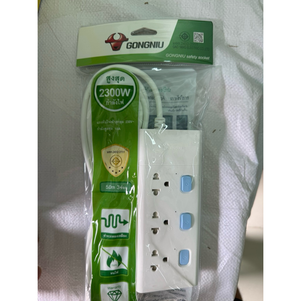 Gongniu ปลั๊กไฟ T3030-3M 3 ช่อง 3 สวิตช์ ยาว 3 เมตร มาตรฐาน มอก.2432-2555 รองรับ 2300W ปลอดภัยด้วยระบบป้องกันไฟฟ้าสถิต