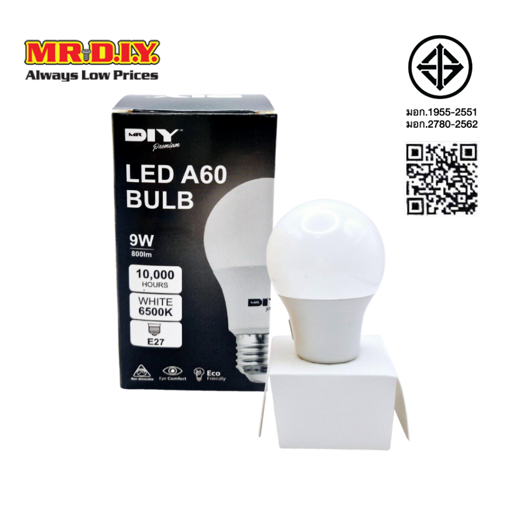 [แพ็ก 3 ชิ้น] มิสเตอร์.ดี.ไอ.วาย หลอดไฟ LED ขั้ว E27 กำลังไฟ 9 วัตต์ Day Light