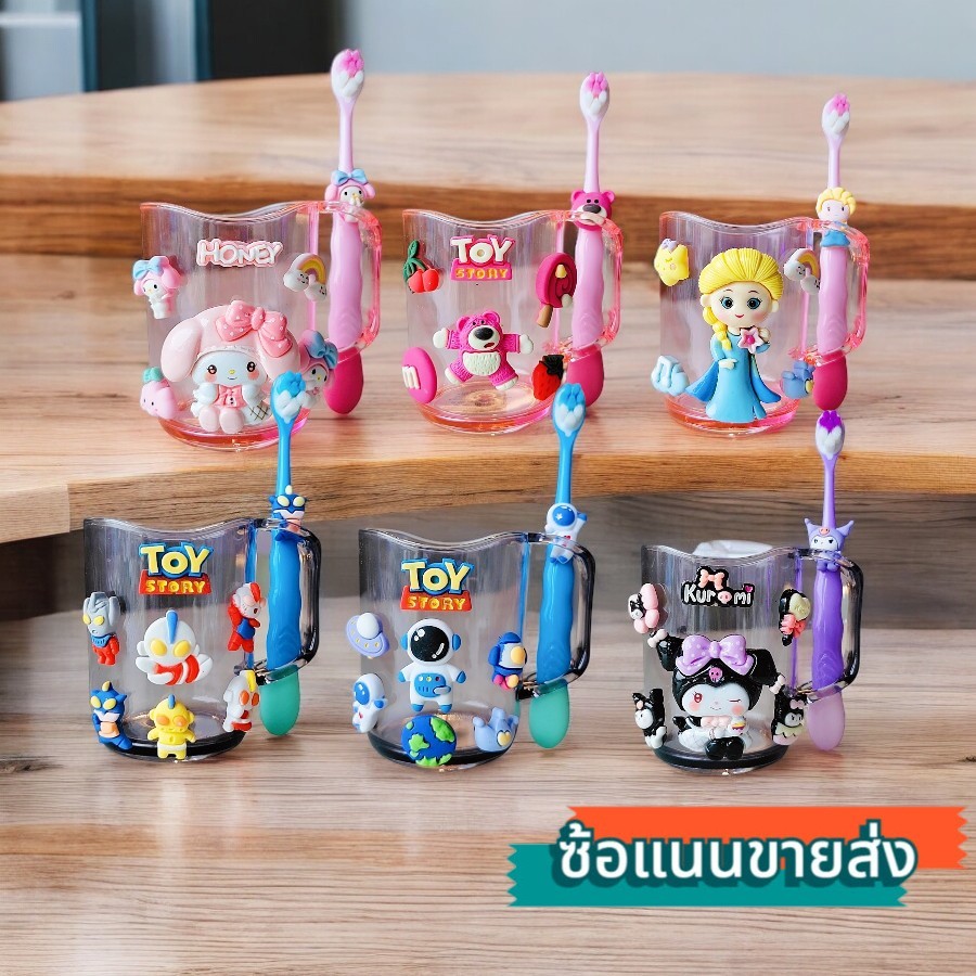 🔥พร้อมส่งจากไทย🔥 เซ็ทแก้ว+แปรงสีฟัน ลายหมีชมพู---แก้วน้ําดื่ม พร้อมแปรงฟัน สําหรับเด็กนักเรียนอนุบาล