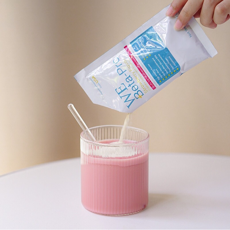 วีเบต้าโปร (กลิ่นสตรอเบอรี่) โปรตีนไข่ขาวและพืช8ชนิด 1 กล่องมี 12 ซอง สำหรับผู้ป่วยมะเร็ง ผู้สูงอายุ