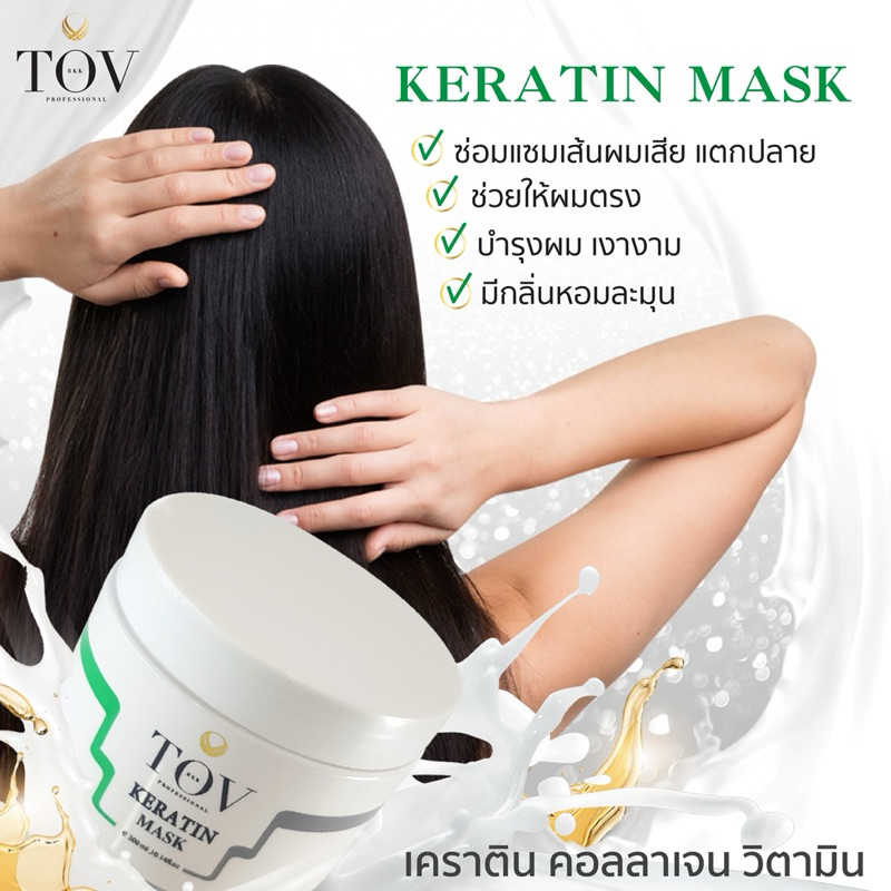 ช่างเสริมสวยใช้แล้วบอกต่อ ทรีทเมนท์เข้มข้น นุ่ม ลื่น และเงา ทรีทเมนท์เคราตินมาร์คTOVขนาด300ml.