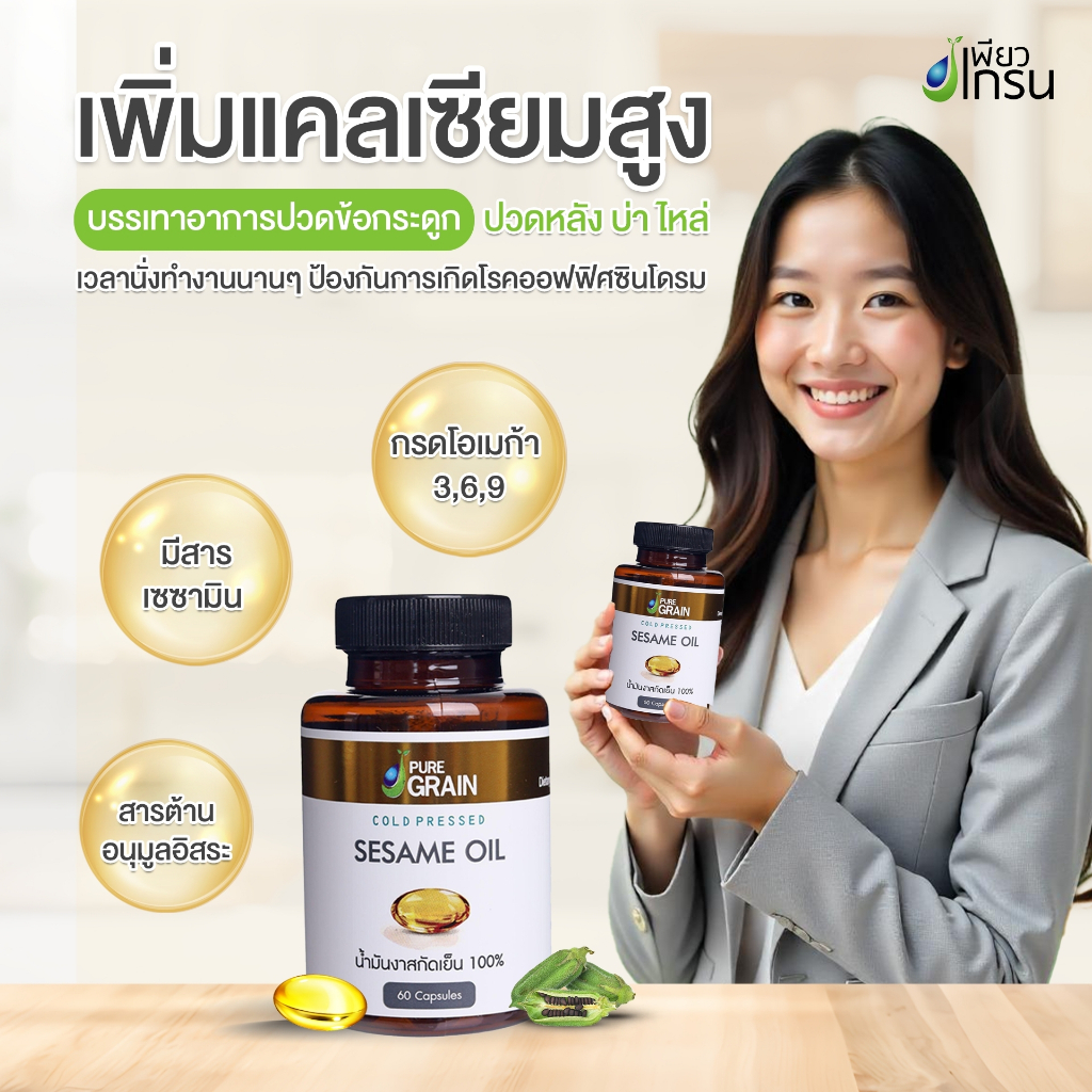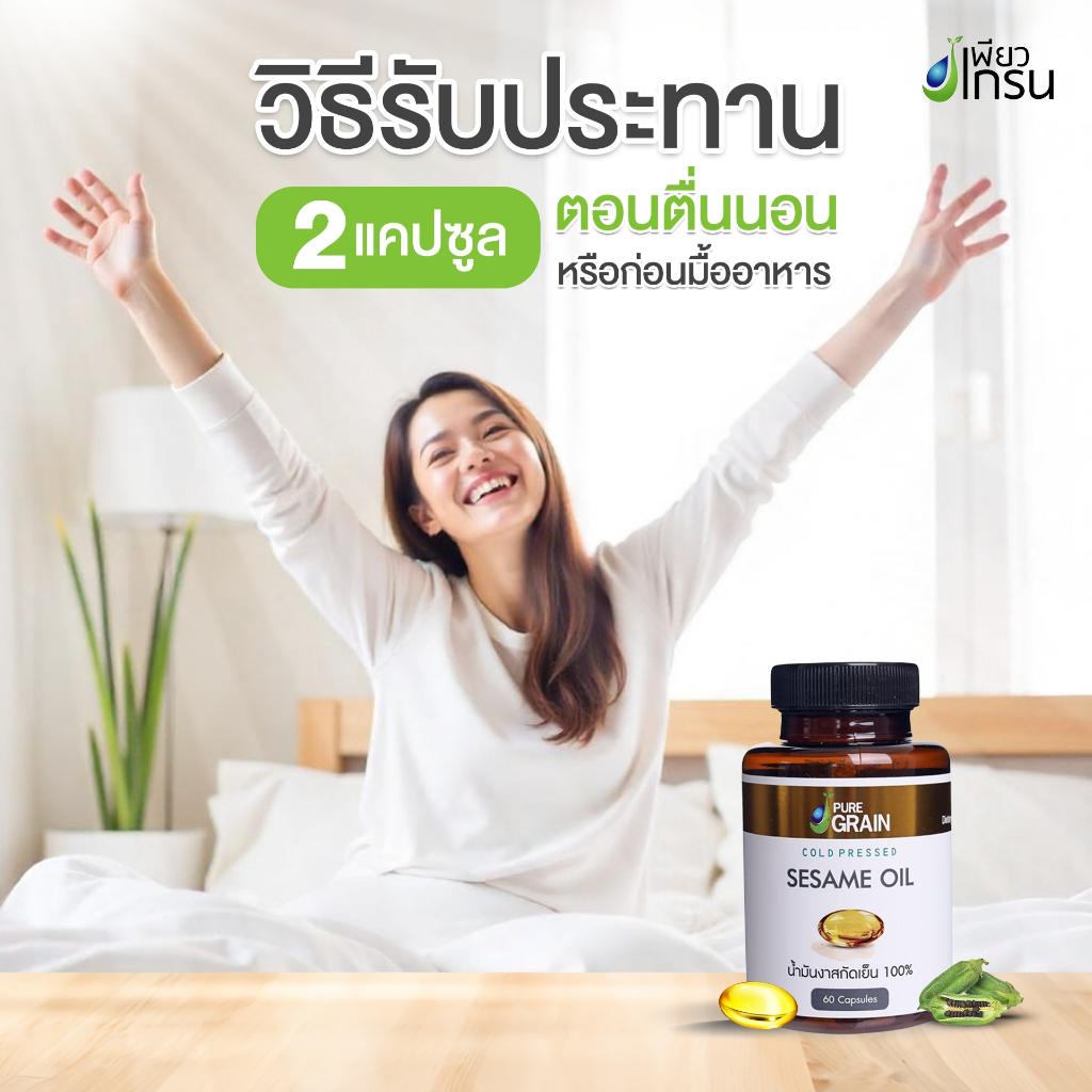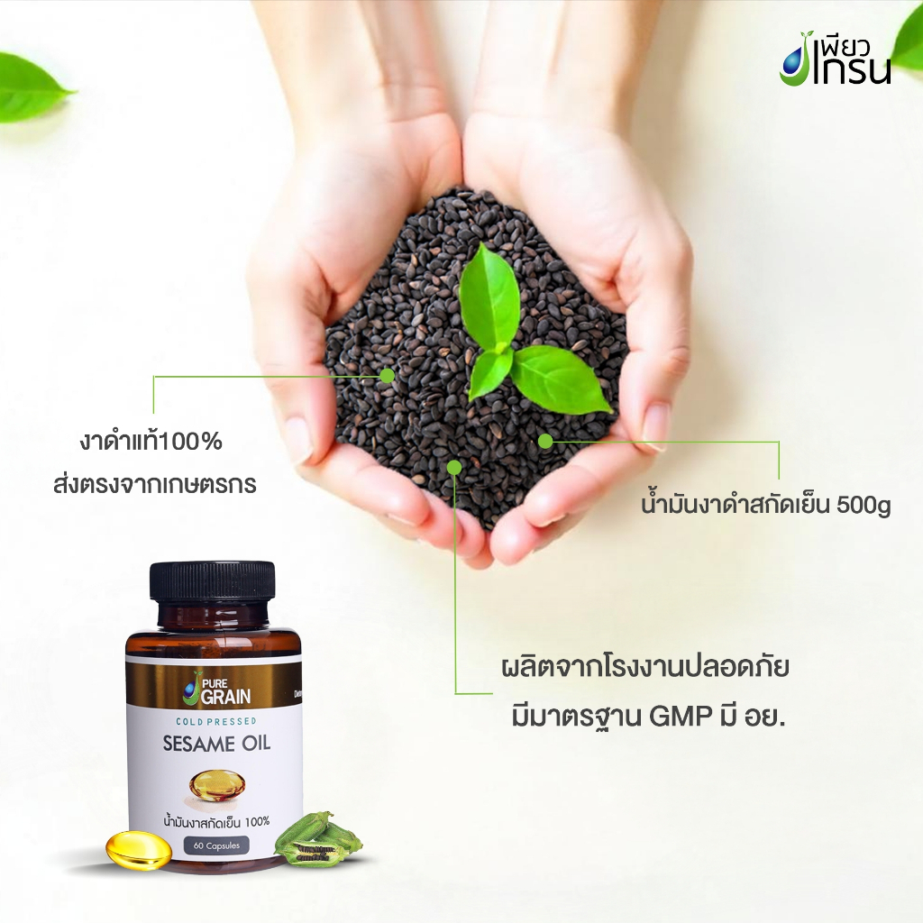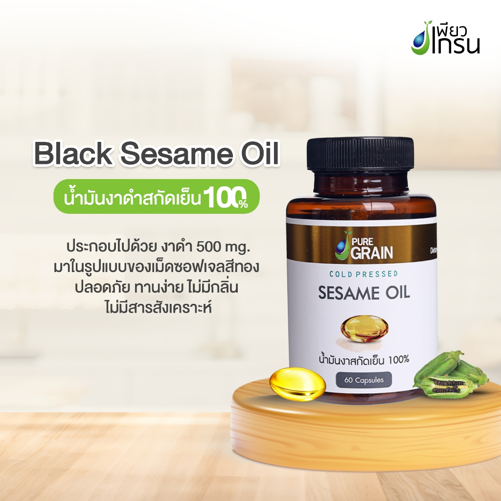 เพียวเกรน น้ำมันงาดำสกัดเย็น100% ชนิดซอฟเจล (จำนวน 60 ซอฟเจล)