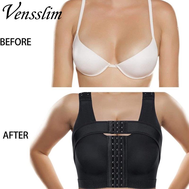 Vensslim ผู้หญิงด้านหน้าเต้านมสนับสนุน Push Up Bra การบีบอัด Body Shaper ปรับตะขอ Breast Control Shaperwear