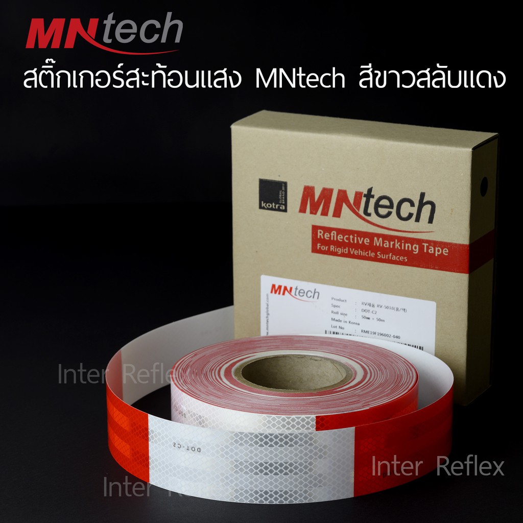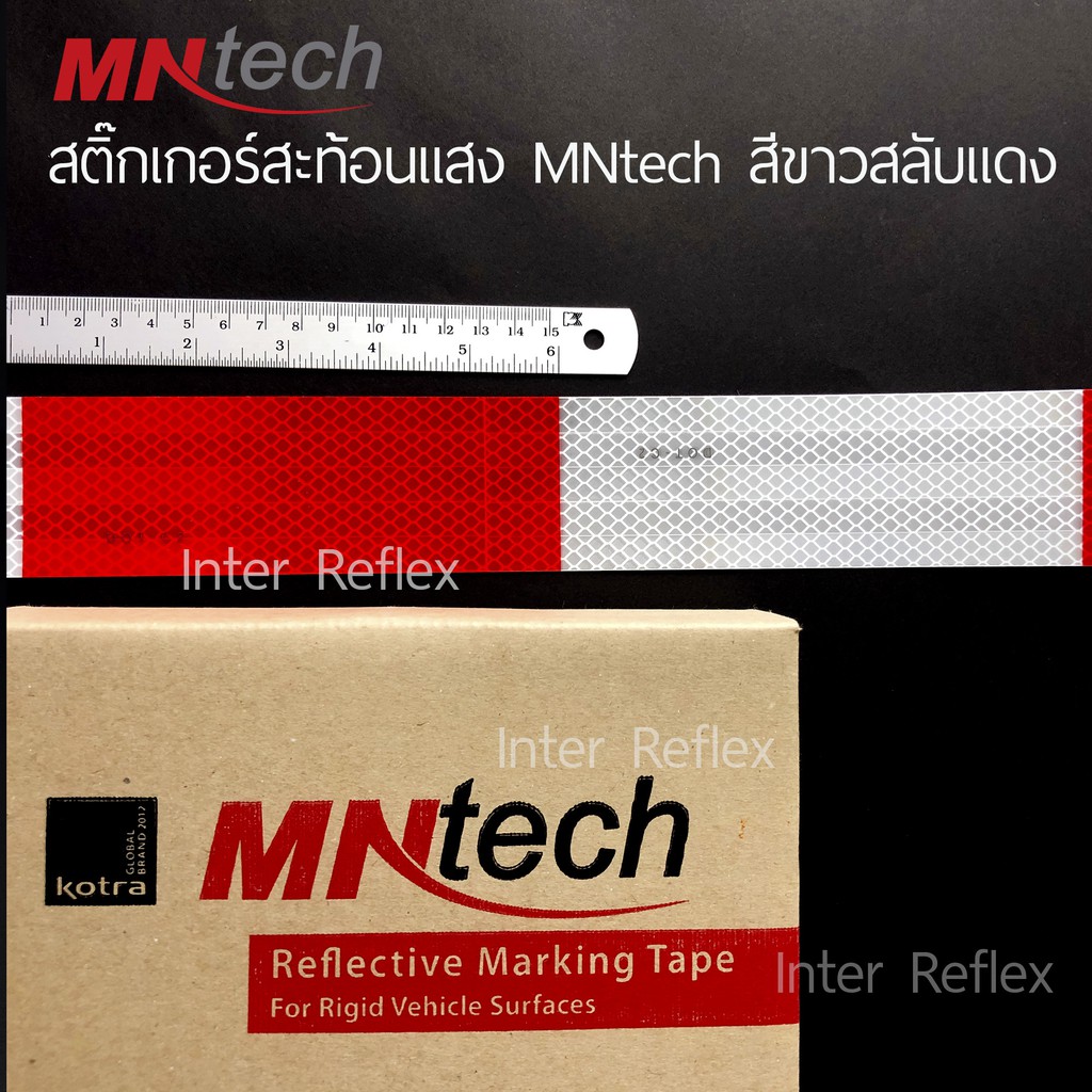สติ๊กเกอร์สะท้อนแสง Diamond Grade MNtech สีขาวสลับแดง สีเหลือง สีแดง สีขาว ผ่านการวัดค่าสะท้อนแสง