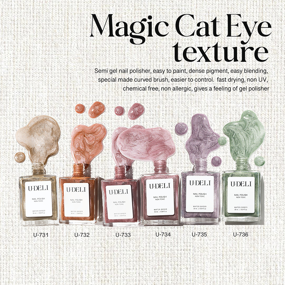 สีทาเล็บ สีแคทอายแมจิค (ไม่อบ) U-DELI Magic Cat Eye Vegan สีลูกแก้ว สีทาเล็บกึ่งเจล U731-U736 สีสวย