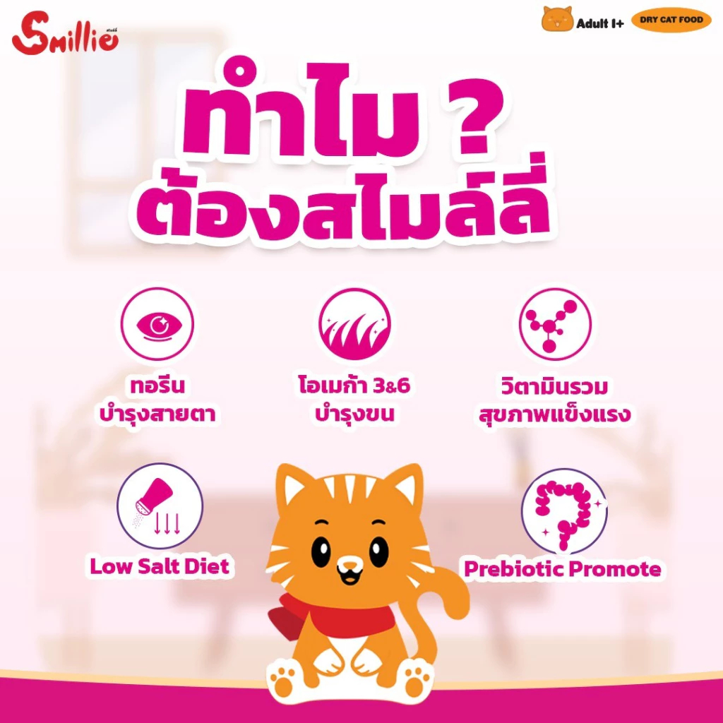 Smillie สไมล์ลี่ อาหารแมว เเบบเม็ด สำหรับเเมวอายุ 1 ปีขึ้นไป รสทูน่า ขนาด1 kg