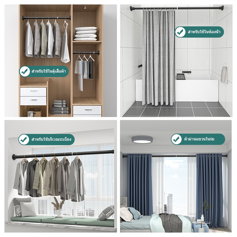 KEVE ราวผ้าม่าน ราวม่านยืดไสลด์ ราวม่าน ราวม่านอาบน้ำ ราวยืดหดได้ ราวม่านไม่ต้องเจาะ ราวยึดผนัง