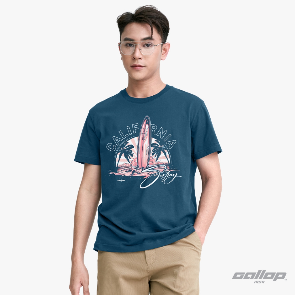GALLOP : Graphic Tee เสื้อยืดพิมพ์ลาย ผ้าคอตตอนผู้ชาย รุ่น GT9187 สี Deep Blue ฟ้าเข้ม / ราคาปกติ 990.-