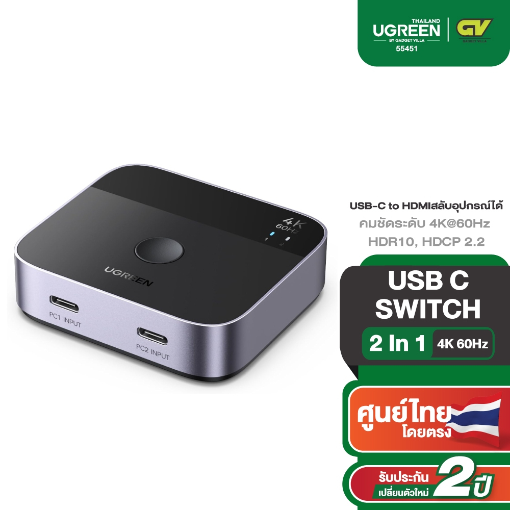 UGREEN USB C Switch 2 In 1 Out USB-C to HDMI สลับอุปกรณ์ได้ รองรับ 4K 60Hz รุ่น 55451