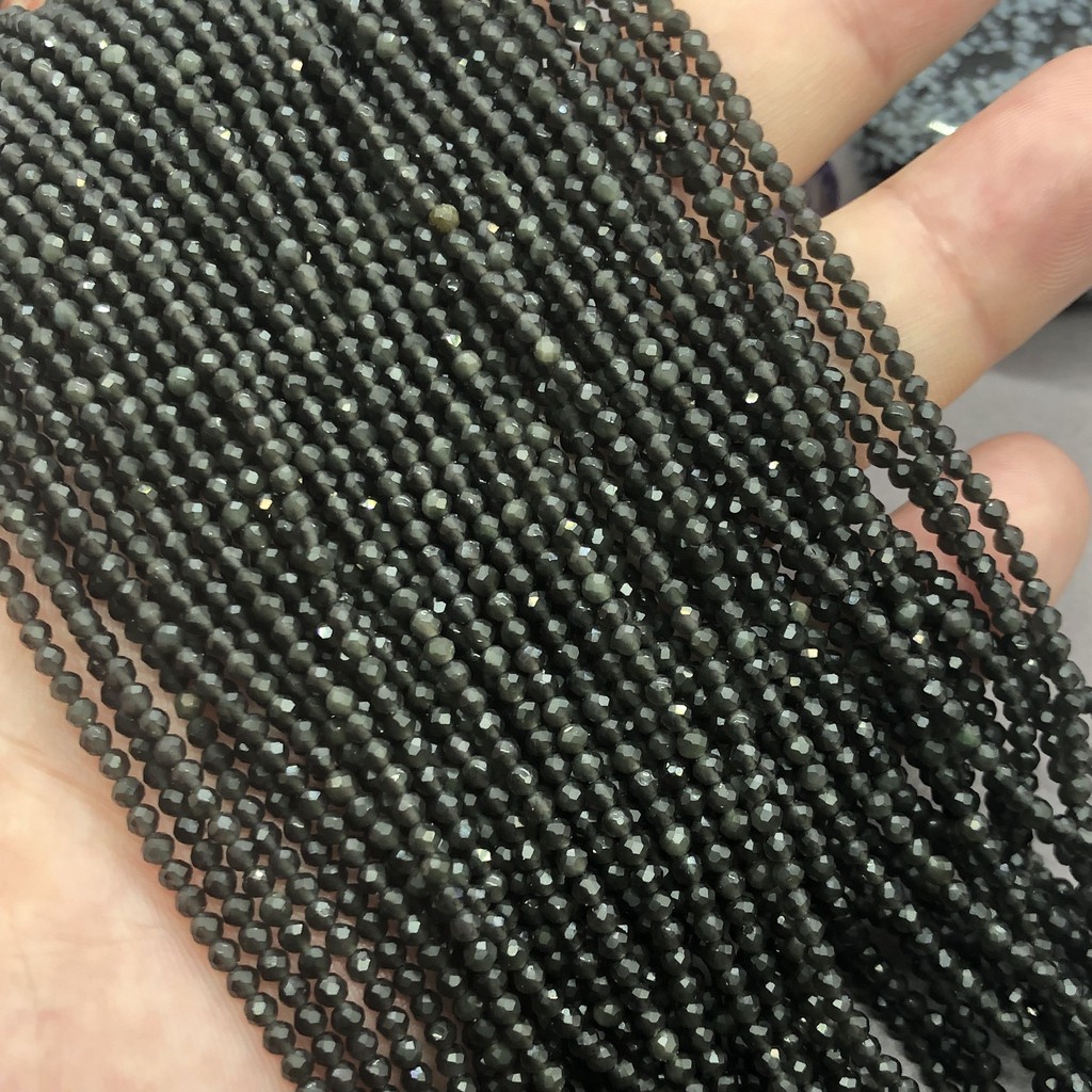 Black Obsidian Small Beads ลูกปัด Obsidian ดำเล็ก ๆ หินธรรมชาติเหลี่ยมเพชรพลอย Cut Shining DIY