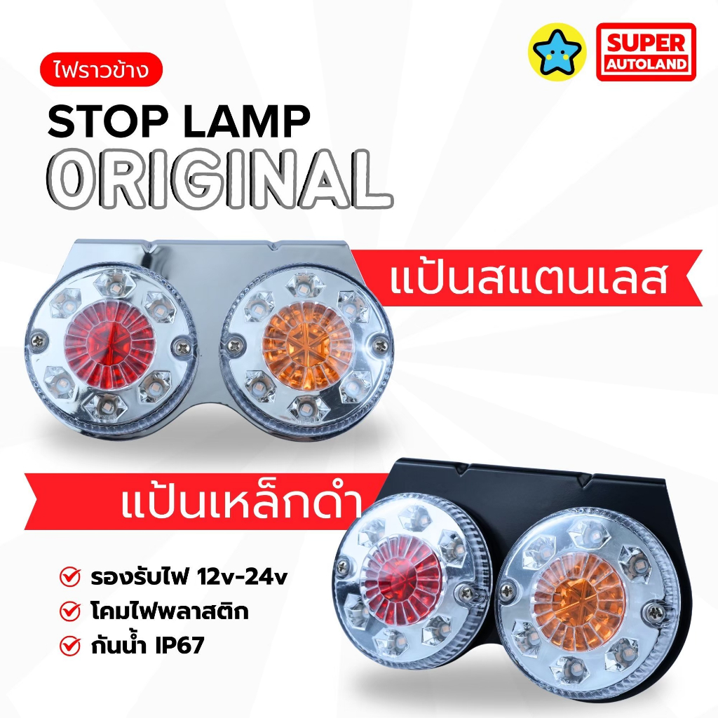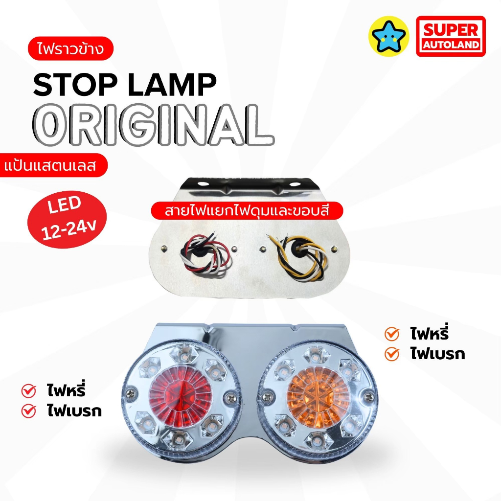 ไฟราวข้างรุ่นคลาสสิค Stop Lamp Original รองรับไฟ 12-24v แป้นสแตนเลส / แป้นเหล็กดำ เบรคหรี่เลี้ยว
