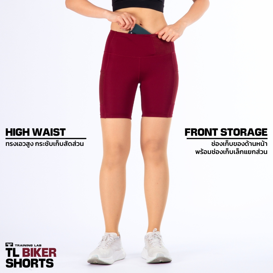 TL BIKER SHORTS กางเกงออกกำลังขาสั้นทรงเอวสูง (Burgundy Red) 24222R